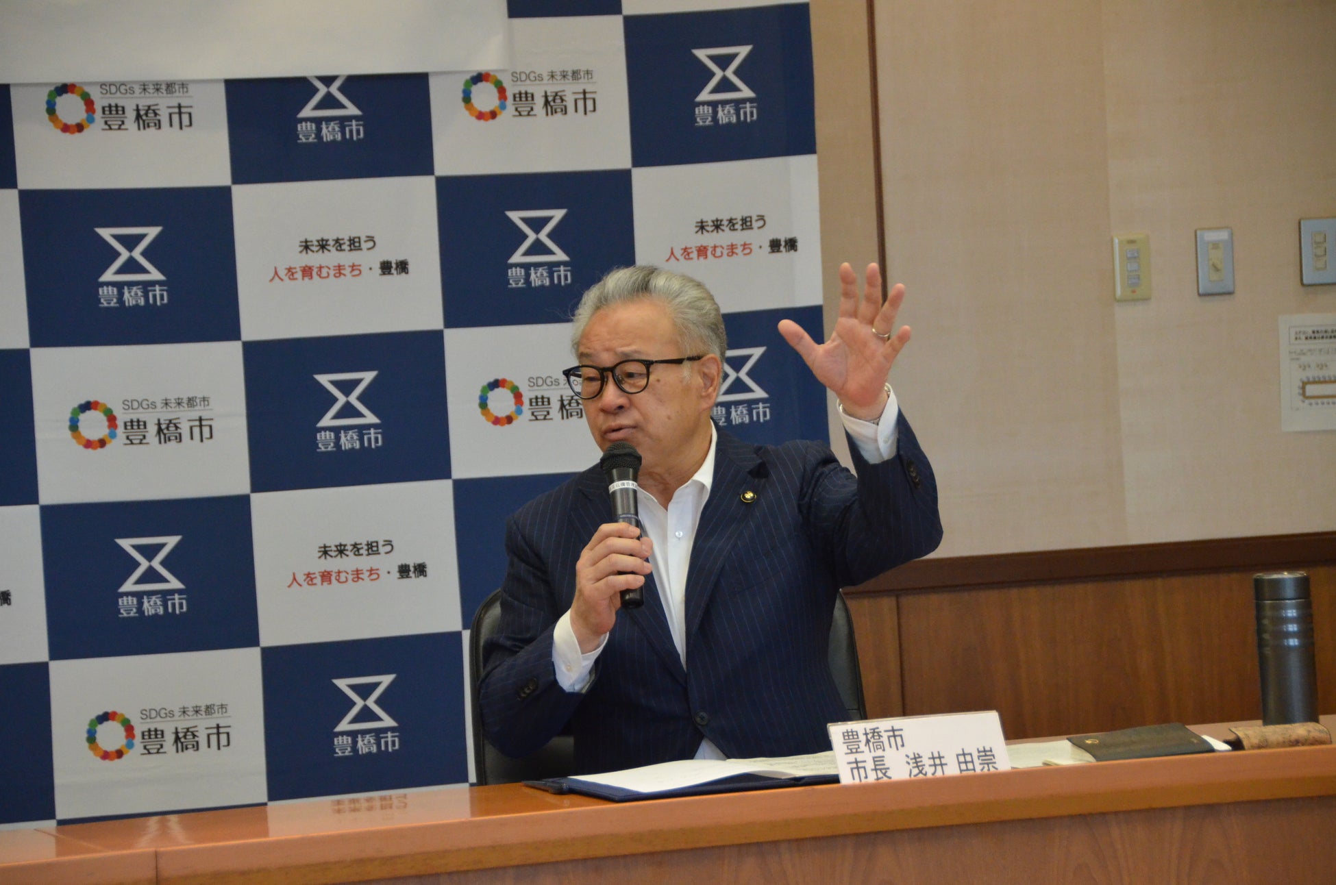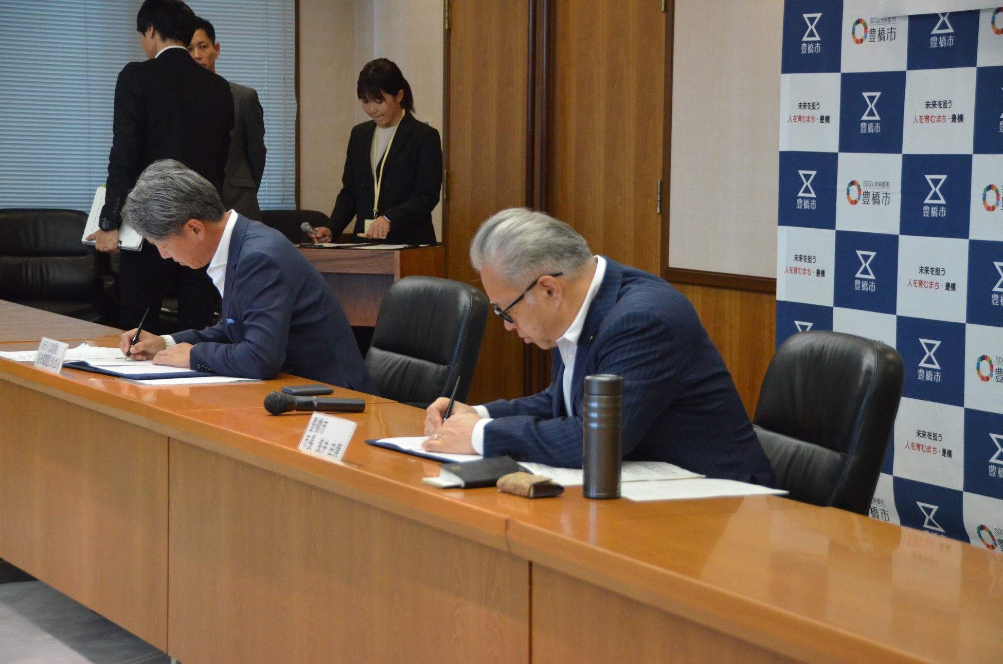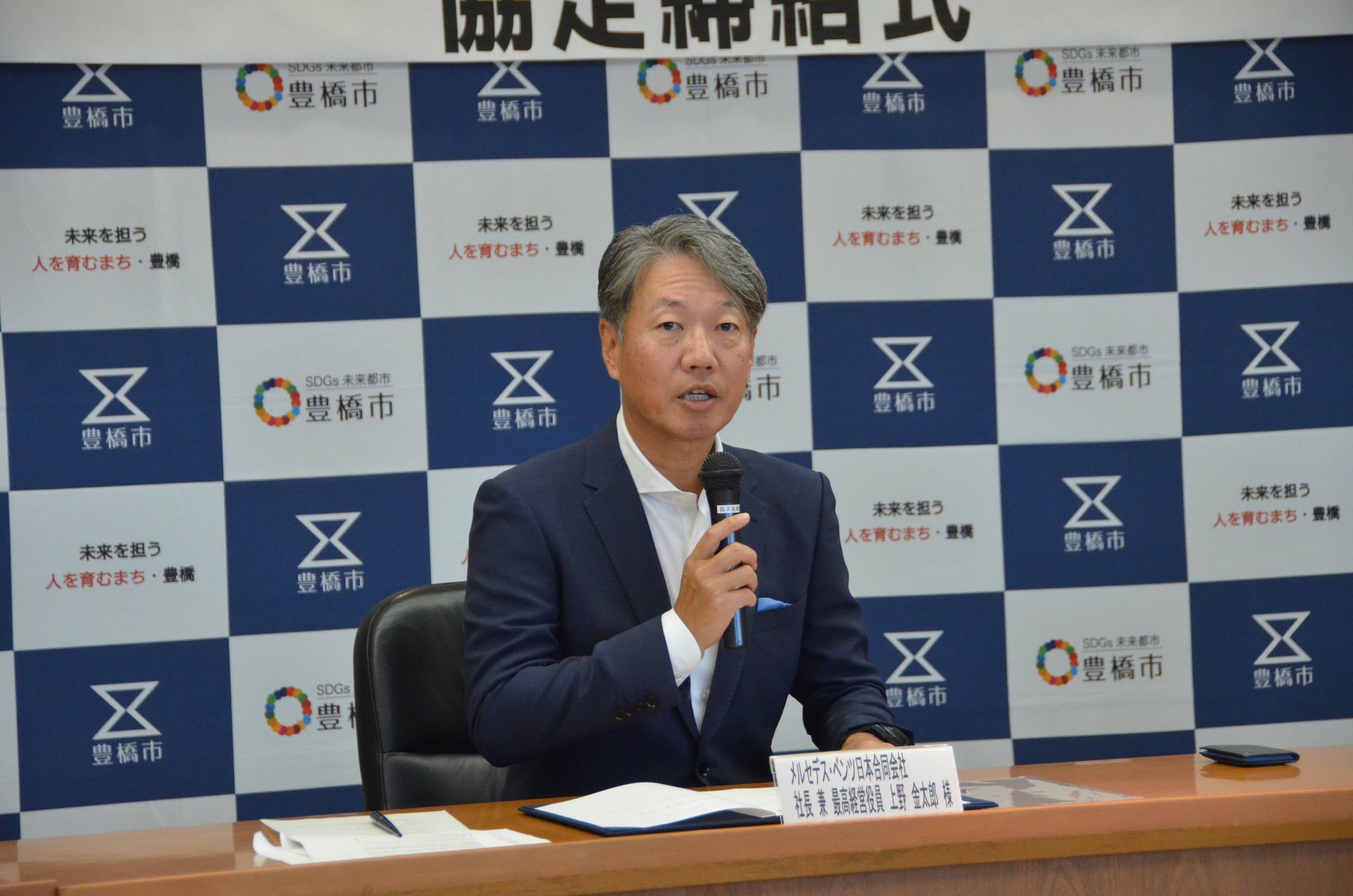 協定の締結式は豊橋市役所で開かれ、浅井由崇市長と上野金太郎社長兼最高経営役員が協定書に署名しました。浅井市長は、過去に市内が大規模停電に見舞われた経験を踏まえ「災害時の電力確保は重要。メルセデス・ベンツの車を借りられ、資器材の電力になり、スマートフォンの充電などができます。災害対応力の強化につながり、大変ありがたいことです」と感謝していました。
