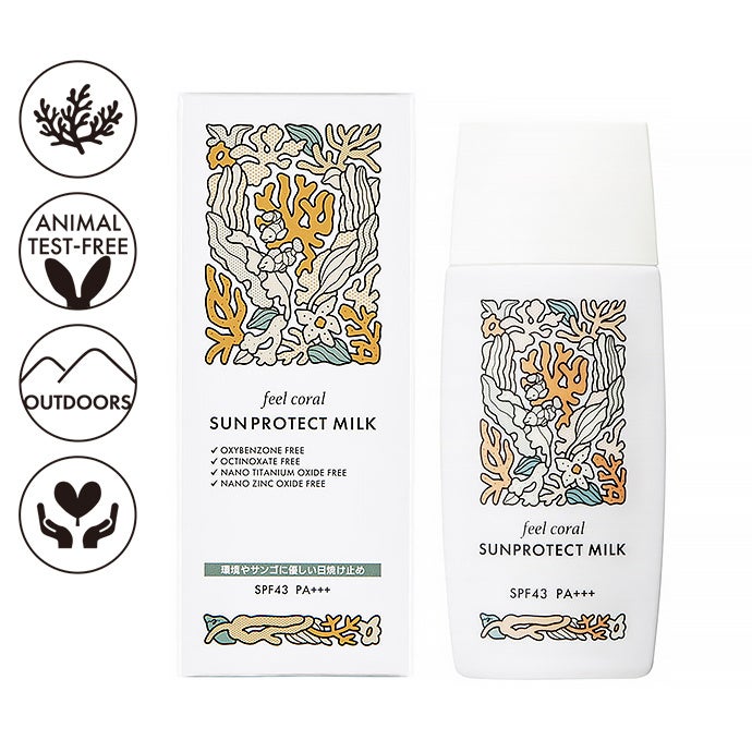 創業当時から続く、社会課題に取り組む姿勢で商品開発された日焼け止め『feel coralサンプロテクト ミルク』は、サンゴに悪影響を与える可能性のある原料を使用しないで製造いたしました。