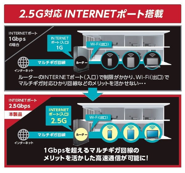 8K・4K動画再生も快適・高速通信!2.5G対応のINTERNETポートを搭載したWi-Fi 6対応ルーターを新発売
