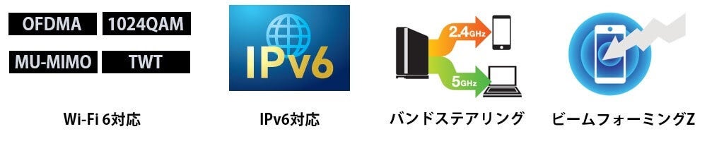 - Wi-Fi 6の技術など多彩な機能で高速化と安定した通信を実現※