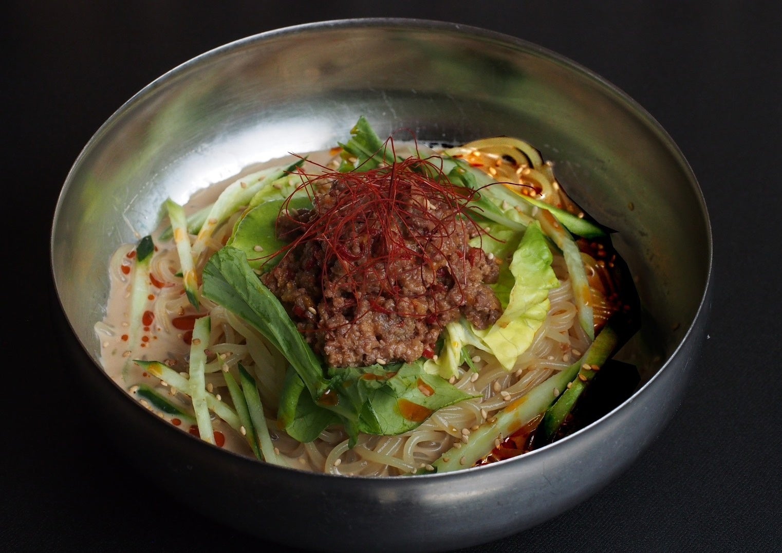 辛ミンチとラー油が冷麺によく合います。かき混ぜてお召し上がりください。