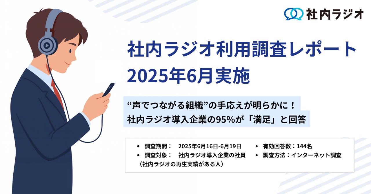 組織をつなぐ音声コンテンツ「社内ラジオ」を提供する株式会社オトバンク(本社:東京都文京区、代表取締役社長:久保田裕也、以下「オトバンク」)は、社内ラジオを導入している企業の社員を対象にアンケート調査を実施し、その結果を「社内ラジオ利用調査レポート(2025年6月実施)」として発表いたします。