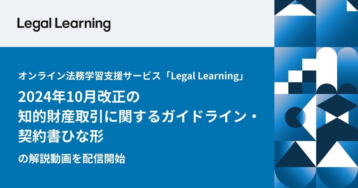オンライン法務学習支援サービス「Legal Learning」、2024年10月改正の知的財産取引に関するガイドライン・契約書ひな形の解説動画を配信開始