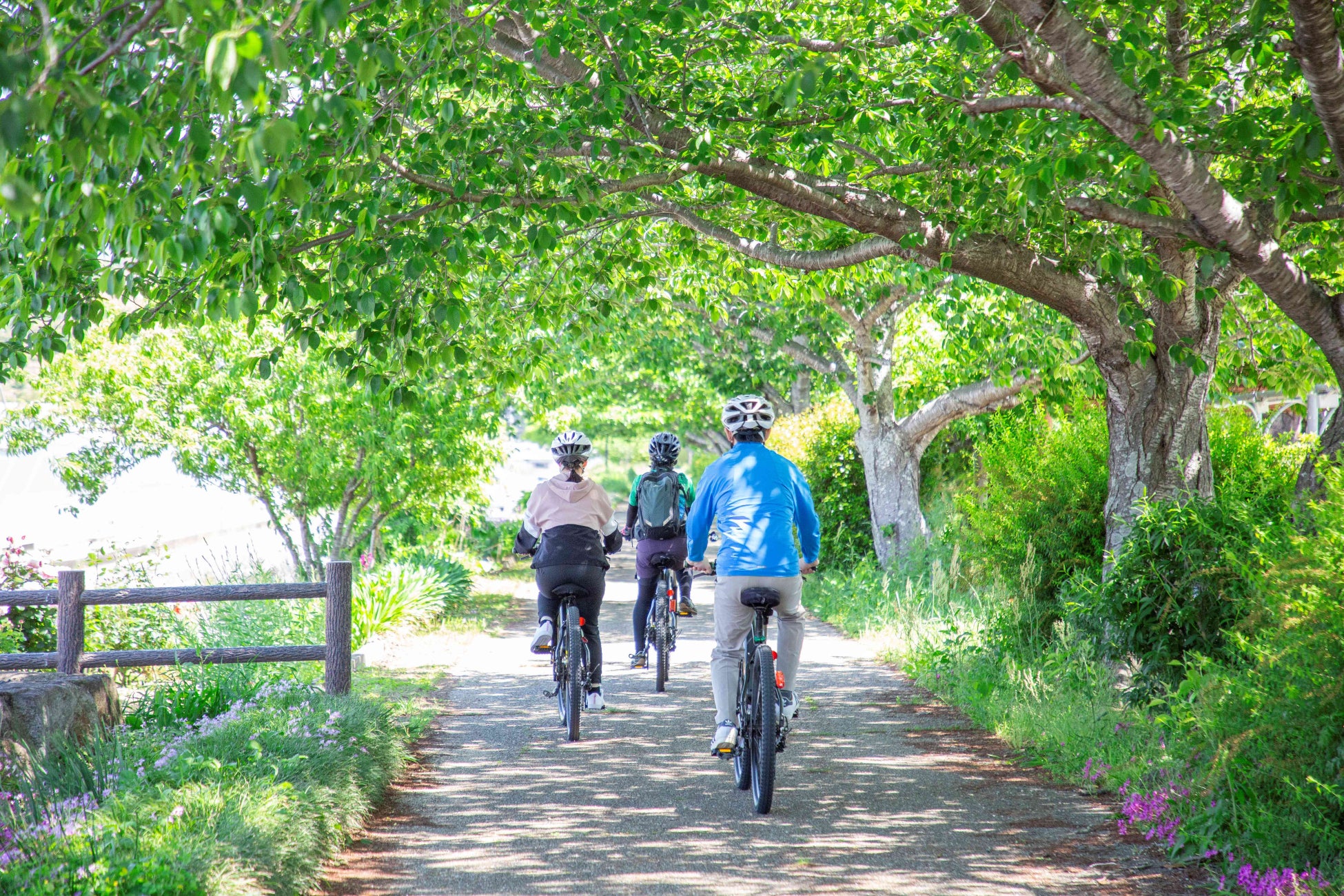 今回走るのは、瀬戸さんが「グランドメルキュール和歌山みなべ」のために特別に設計した約20kmのコース。最大約53mのアップダウンがあるものの、Eバイクなので坂道もスイスイと快適に走行可能です。慣れてくると時速15~18kmほどで走行でき、心地よい汗とともに達成感を味わうことができます。サイクリングだからこそ出会える、景色や風や音、そして香りなど、五感を研ぎ澄ませて心身ともにリフレッシュいただけます。