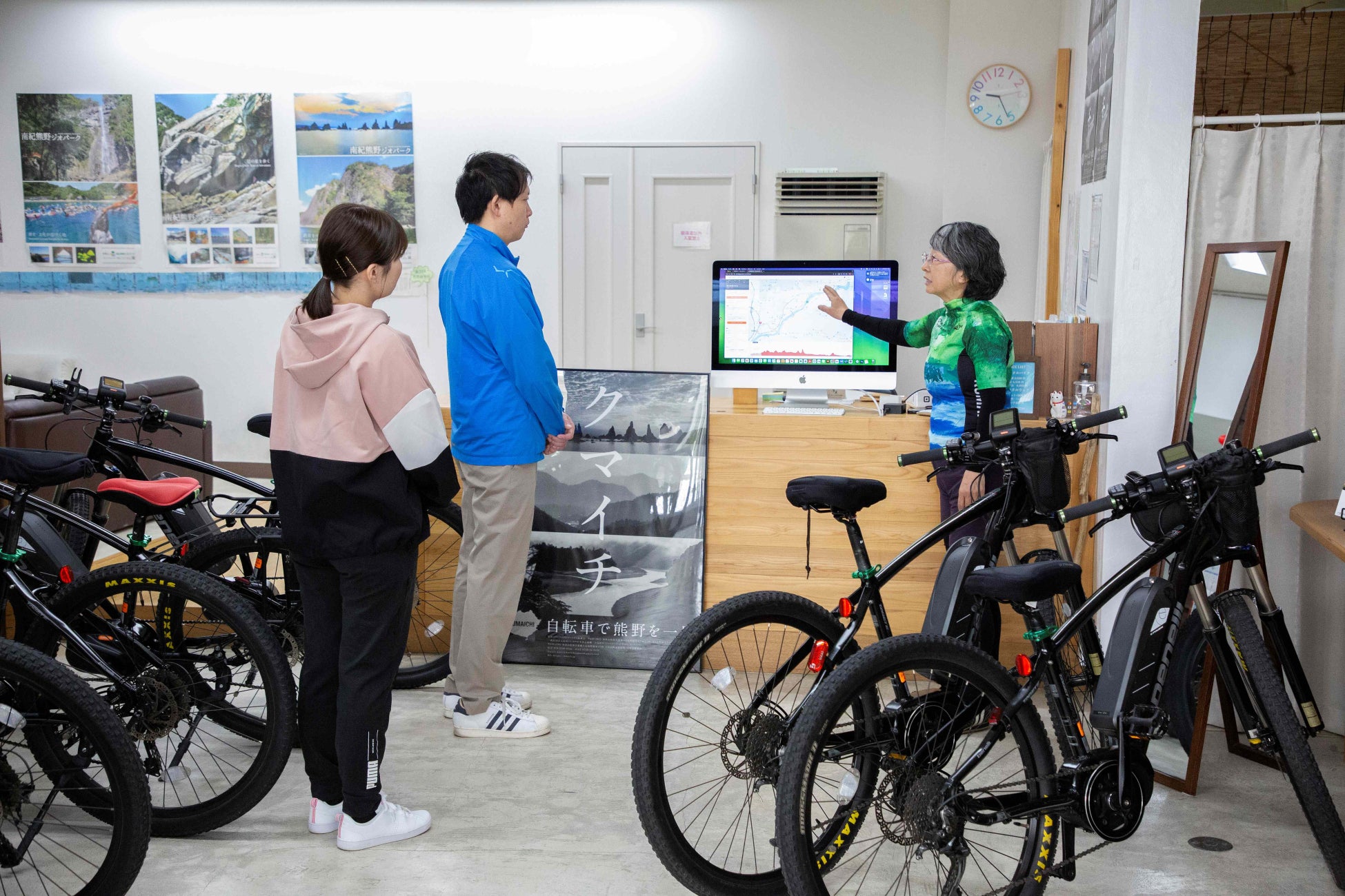上富田の風景やサイクリング環境に魅了され2020年からサイクルステーション「KMICH(クミッチ)」を運営。熊野を一周するサイクリングコース「クマイチ」を広めるため積極的に活動しています。また、体力に自信の無い方や、女性でも気軽にサイクリングを楽しんでほしいと、電動アシスト付きマウンテンバイク(Eバイク)のレンタルを導入しています。