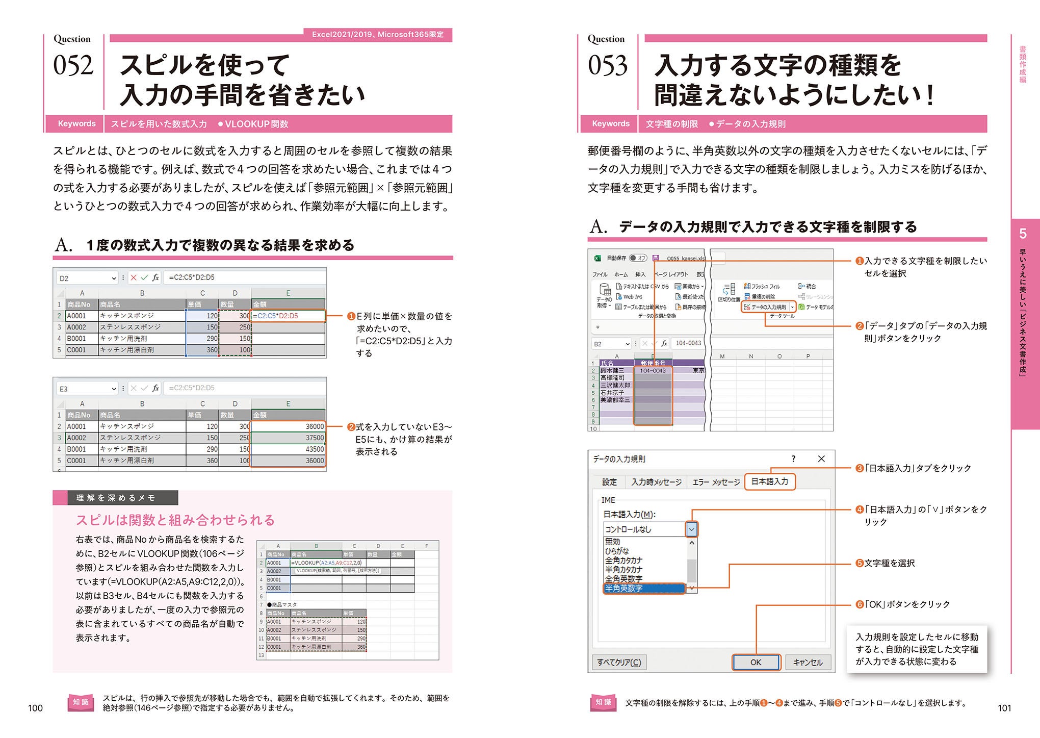 いずれも画面写真付きで操作方法を解説しており、エクセルに不慣れな人でもテクニックをしっかりと身につけることができます。