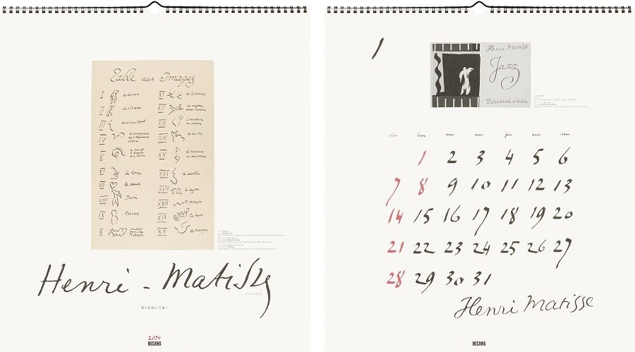 20世紀の美術を代表する巨匠・マティスの手書き文字によるカレンダーです。没後70年を数え、2023年・2024
