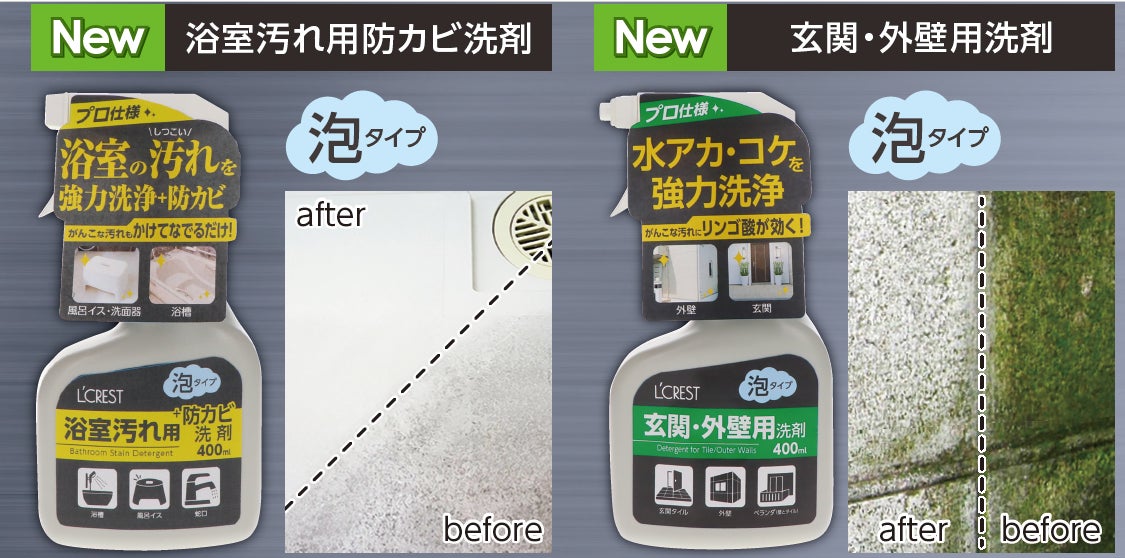 プロ仕様の洗浄力で頑固な汚れを落とす!強力住居洗剤シリーズに「浴室汚れ用防カビ洗剤」「玄関・外壁用洗剤」が新たにラインナップ!