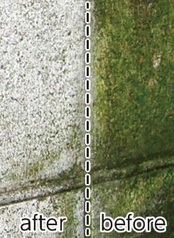 玄関タイルや外壁、ベランダなどの専用洗剤。汚れに吹きかけると、配合されたリンゴ酸の成分が作用し、水アカやコケ汚れを強力洗浄します。泡タイプなので、壁面でも有効成分がとどまり、汚れの内部まで浸透します。