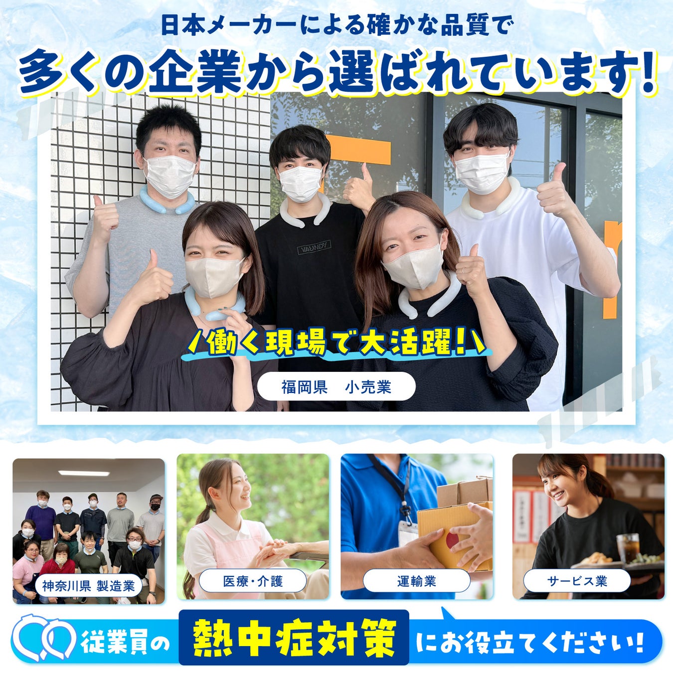 首元ひんやり君(クールネックリング)、販売実績約21,600本達成!人気のLサイズが法人向けにも好評。PCM増量でひんやり感長持ち、安心の安全性検査クリアで暑さ対策に最適なアイテム