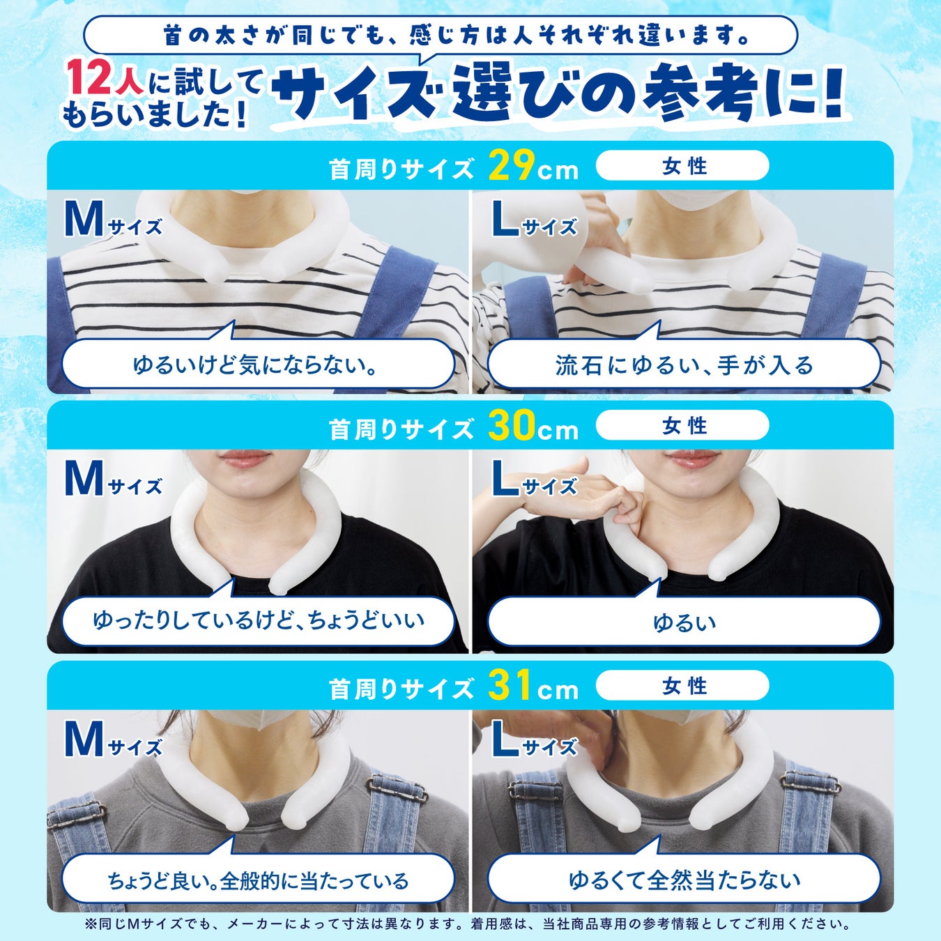 サイズ選びで迷わないよう12人にアンケートを実施。