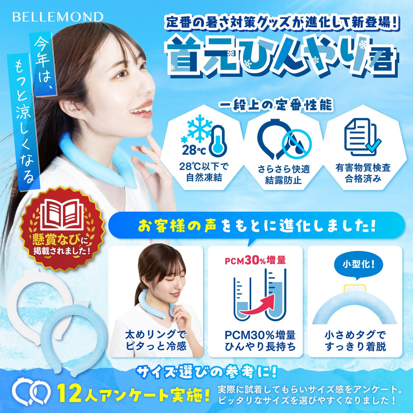 Fun Standard株式会社(本社:福岡県大野城市)が運営するブランドBELLEMOND(ベルモンド)は、首回りを冷やす暑さ対策グッズ「首元ひんやり君」(クールネックリング)が、2024年4月からの販売開始から約21,600本の販売実績を達成したことをお知らせいたします。