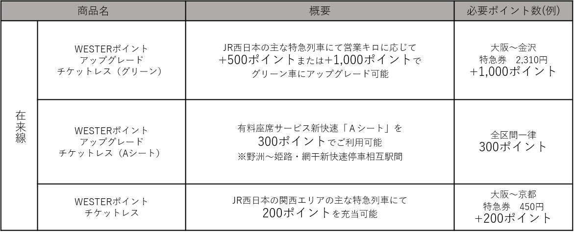 他にもおトクな商品をご用意しましたので、この機会に是非たまったWESTERポイントを使っていつもより快適に在来線をご利用ください。