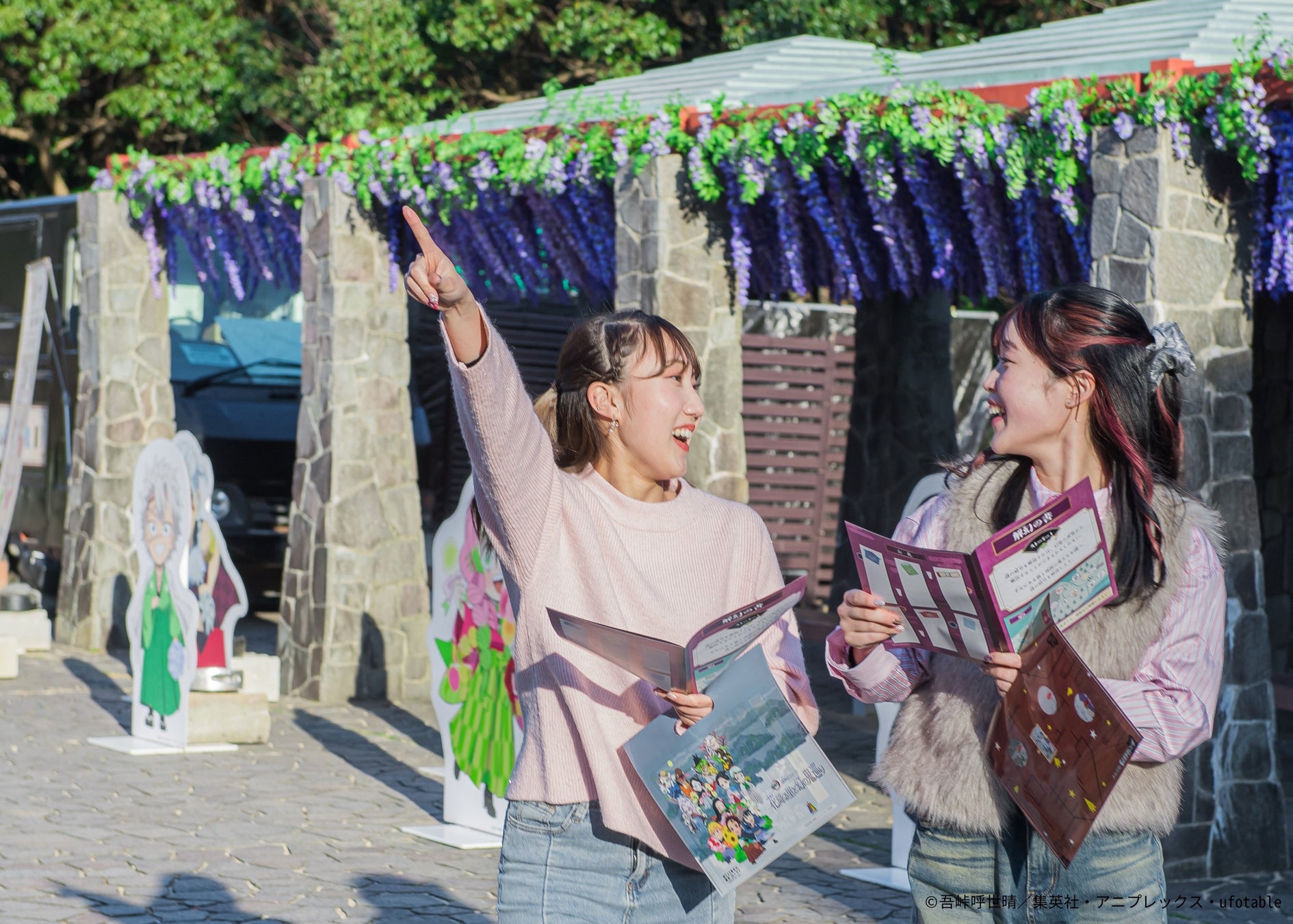 ニジゲンノモリオリジナルとなるufotable描き下ろしイラストのキャラクターパネルが設置されたエリアを周遊しながら、謎解きゲームを楽しむことができる。