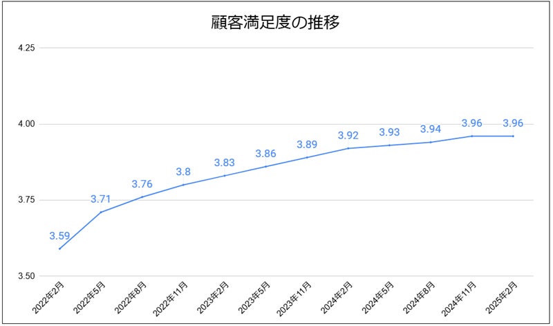 ・開始から3年経過し、当初3.59点だった顧客満足度の平均点が3.96点まで向上した