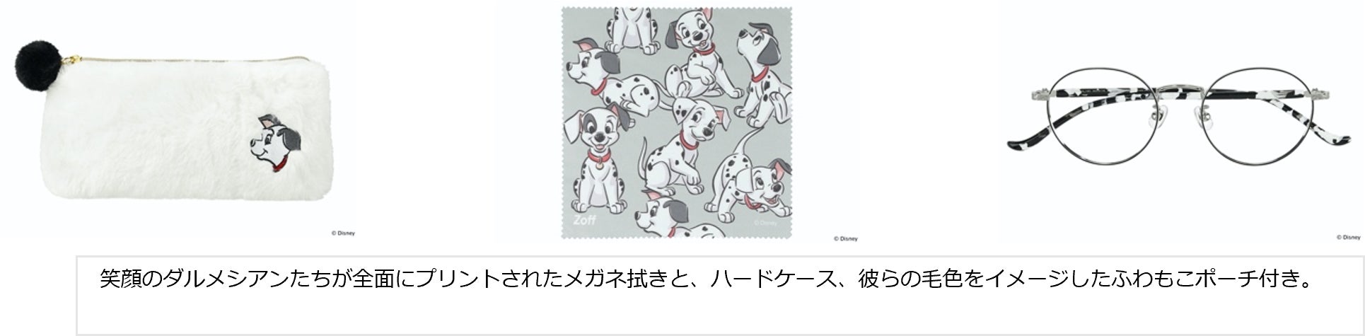 作中で大活躍するダルメシアンからインスパイアされた、モノトーンのシックなフレーム。