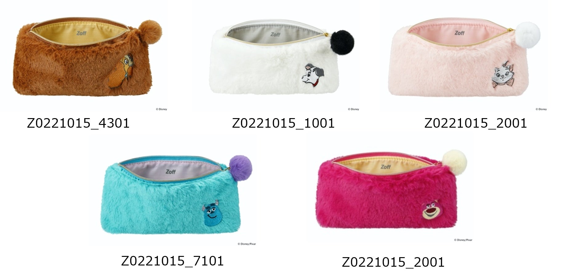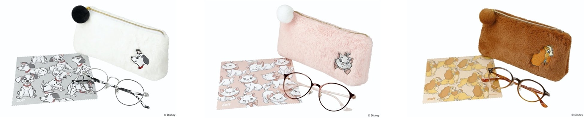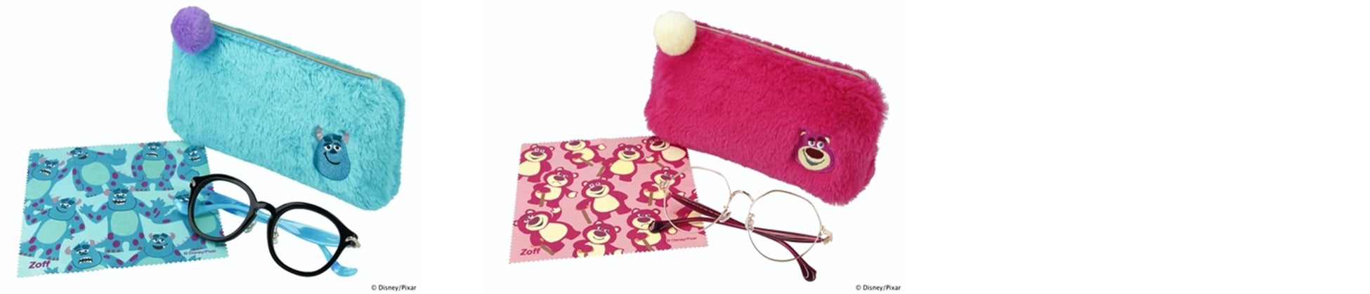 Zoff公式オンラインストア限定で、各キャラクターのアイウェアとセットになっている「ふわもこポーチ」だけの単品購入もOK!