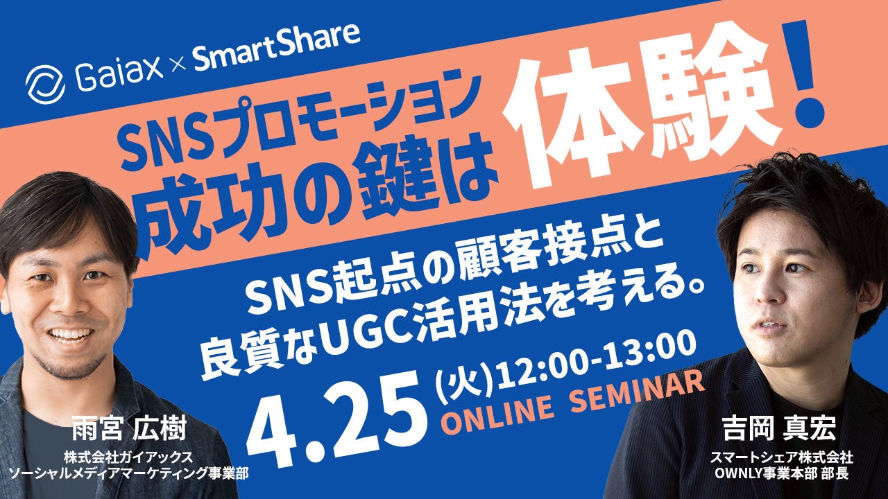 ガイアックスとスマートシェア株式会社が『SNS起点の顧客接点と良質なUGC活用法を考える』ウェビナーを4月25日(火)開催!