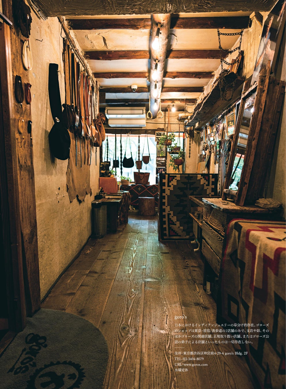 ゴローズのショップは東京・原宿/表参道の1店舗のみで、支店や卸、そのほかゴローズの関連店舗、正規取り扱い店舗、またはゴローズ公認の弟子による店舗といったものは一切存在しない唯一無二のブランドです。日本発のレザークラフト&インディアンジュエリーショップとして、その作品に心酔するファンから世界中で熱狂的なまでの注目を浴びています。