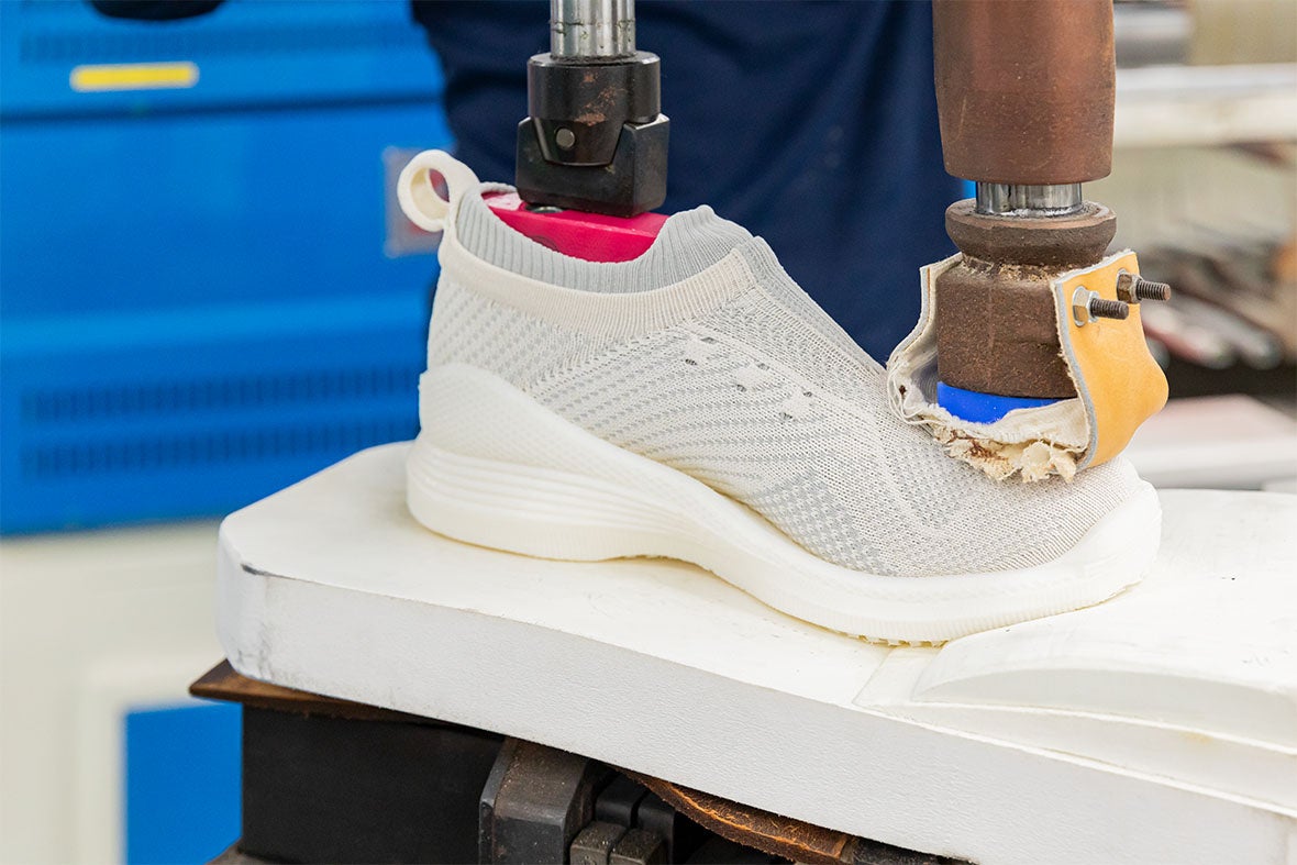 今回の製造工程では、通常シューズ作りで必要とされる金型が不要になります。また、個人に合わせ作成するため、材料や在庫を大量に生産する必要もなく、輸送費の削減にもつながります。従来の大量生産、大量消費、大量廃棄から脱却し、環境にやさしい新たなシューズ作りのフローの確立を目指します。