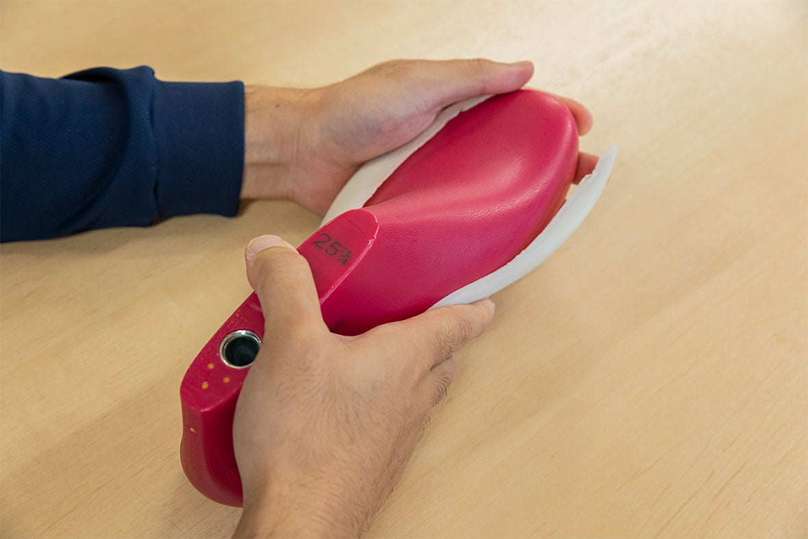 極端に足幅が広い、狭い、左右でサイズが異なる人への対応はもちろん、将来的には脚の長さが違う人へはソールの厚さを調整する、体のバランスや個人の好みによってソールの硬度を変更するなどもできるよう開発を進めています。