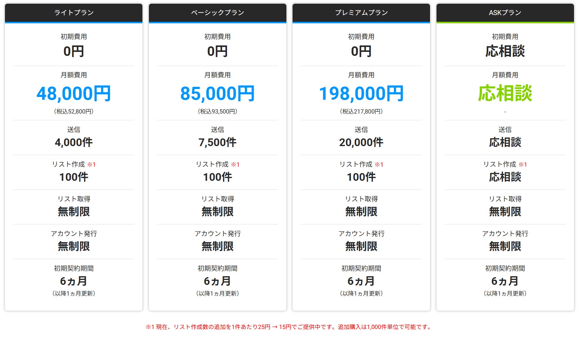 4.8万円~で4000件以上の企業にアプローチが可能(1件あたり12円~)、自社での作業やフォームDM代行などに比べ、大きく時間を短縮しながらより多くの企業に低コストで営業が可能なため、より多くの新規案件獲得が見込めるサービスです。
