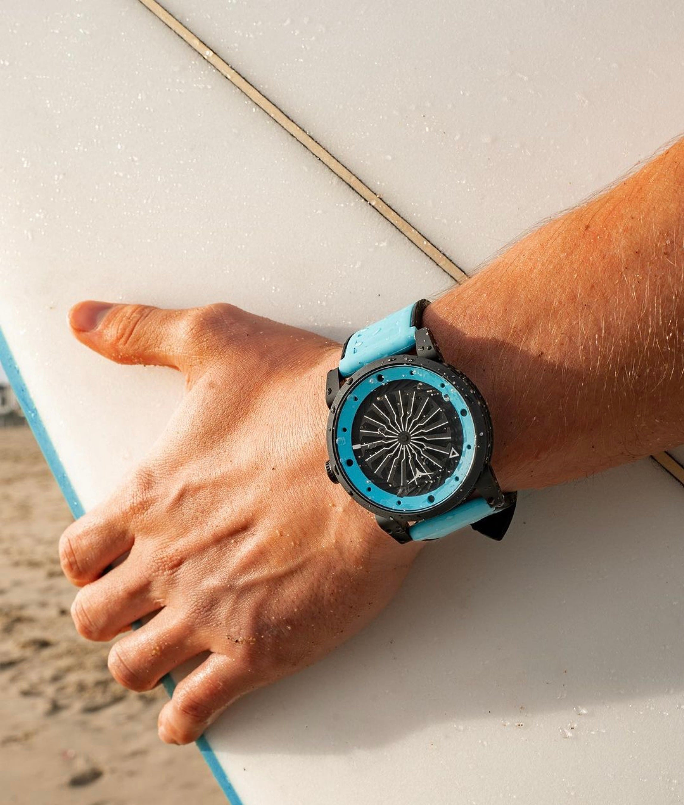 本作は『BLADE』コレクションの特徴であるタービン型秒針はそのままに、同色で統一されたケースとストラップによって洗練された印象に。ポリカーボネート製のケースは軽やかさとともに堅牢製も兼備。高品質なプレミアムシリコンを採用したストラップは肌馴染みが良く、耐熱性や耐久性、柔軟性にも優れます。