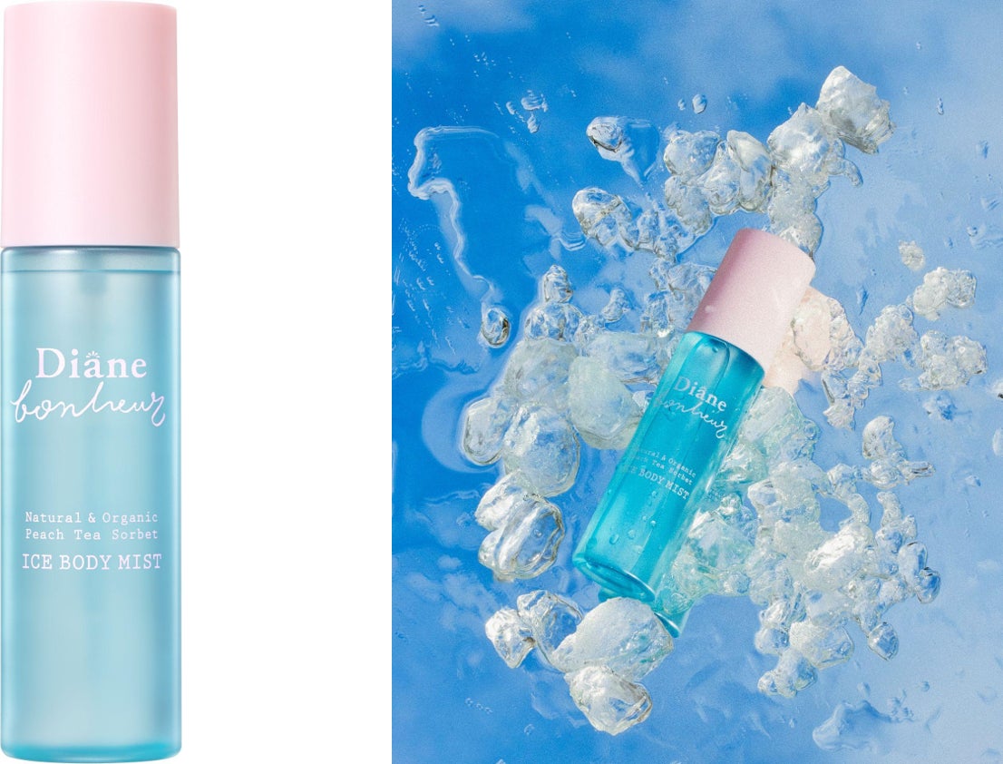 今回新たに発売するのは、これからの暑い季節に爽やかにリフレッシュできるアイテムです。同ブランドとしては初となるアイスシリーズで、人気のドライシャンプーとバスエッセンスに加えて、初のボディミストも展開。スーッとするクール感を感じていただけるメントールを配合しました。さらに香りは、フランスの避暑地でシャーベットを食べて涼むシーンをイメージした「ピーチティーソルベの香り」。ダイアンボヌールがこだわる香りからも爽快感を感じられるようにしました。パッケージは見た目も涼やかなブルーを基調に淡いピンクをアクセントに取り入れ、気分があがるデザインに仕上げました。