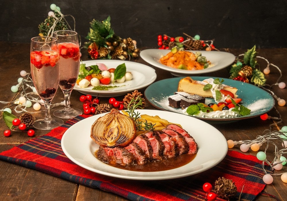 希少部位である「ミスジ」の牛ステーキをメインに、もちもちの食感が特徴の海老とアボカドの生パスタやモッツァレラチーズのカプレーゼなど、クリスマスにぴったりのお料理に加え、ウェルカムドリンクとしてフルーツが浮かぶ「ベリーベリースパークリング」を、デザートにはクリスマス感たっぷりのSWEETS盛り合わせと、全5品の魅力的なプランをご用意しました。