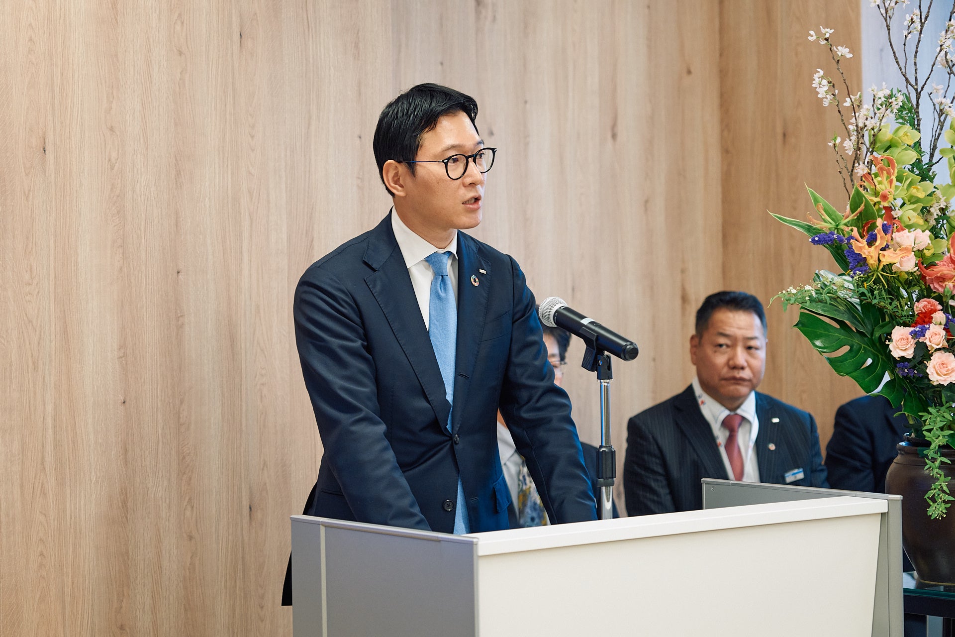 挨拶を述べる代表取締役社長兼COO 遠藤浩彰