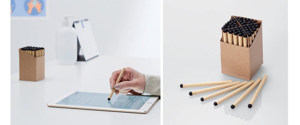 ペン軸は強度のある紙製で、しっかりと握れます。ペン先は柔らかいシリコン製で、タッチパネルを傷つけにくくなっています。さらにペン軸とペン先は簡単に分離できるので、各自治体のルールに合わせて分別廃棄できます。