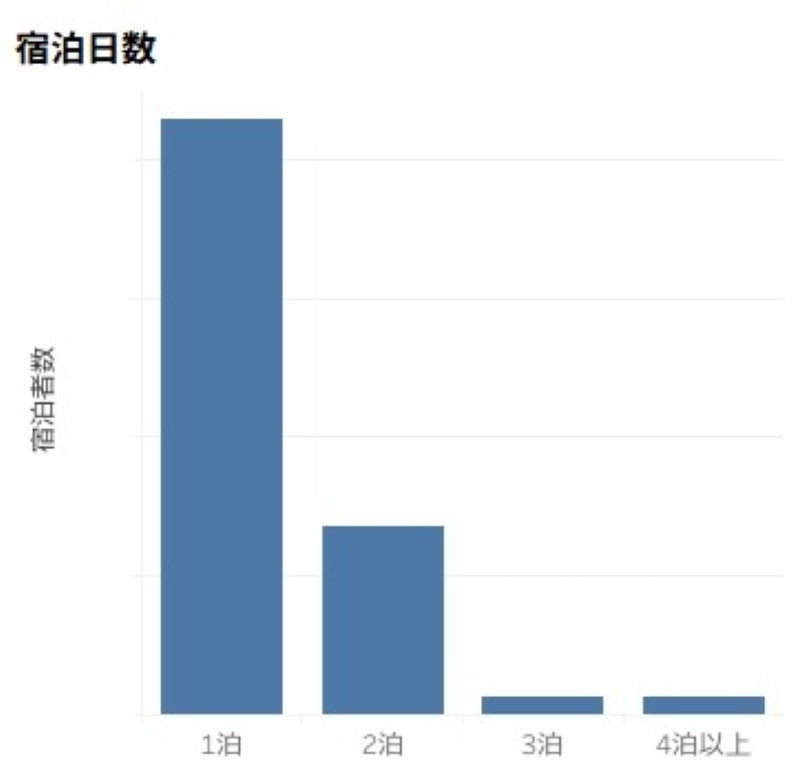 中津川市における宿泊日数について見てみると、1泊が最も多いことがわかります。宿泊客の前後の宿泊の傾向も踏まえると、中津川市が中山道や広域周遊ルートの中継地として機能していると考えられます。