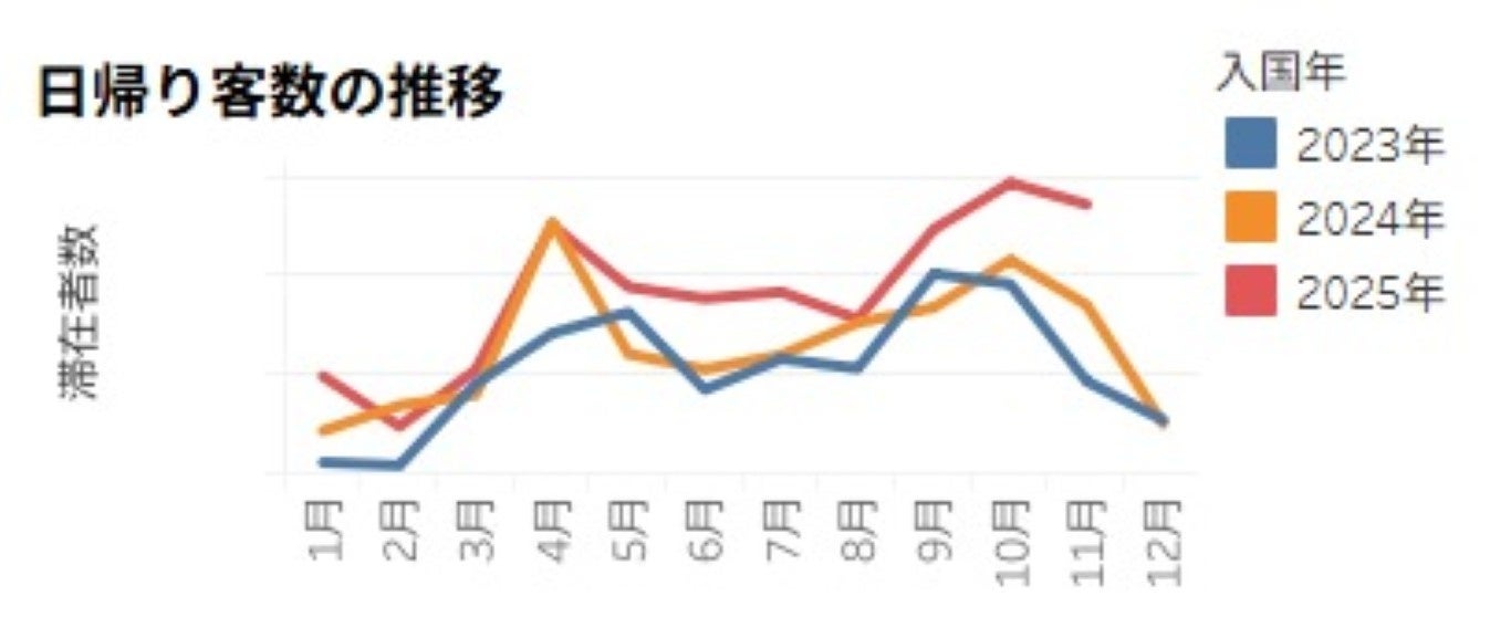 以降、訪問が多かった2025年9月〜2025年11月の中津川市の宿泊・日帰りについて「宿泊・日帰りの比較」を確認します。