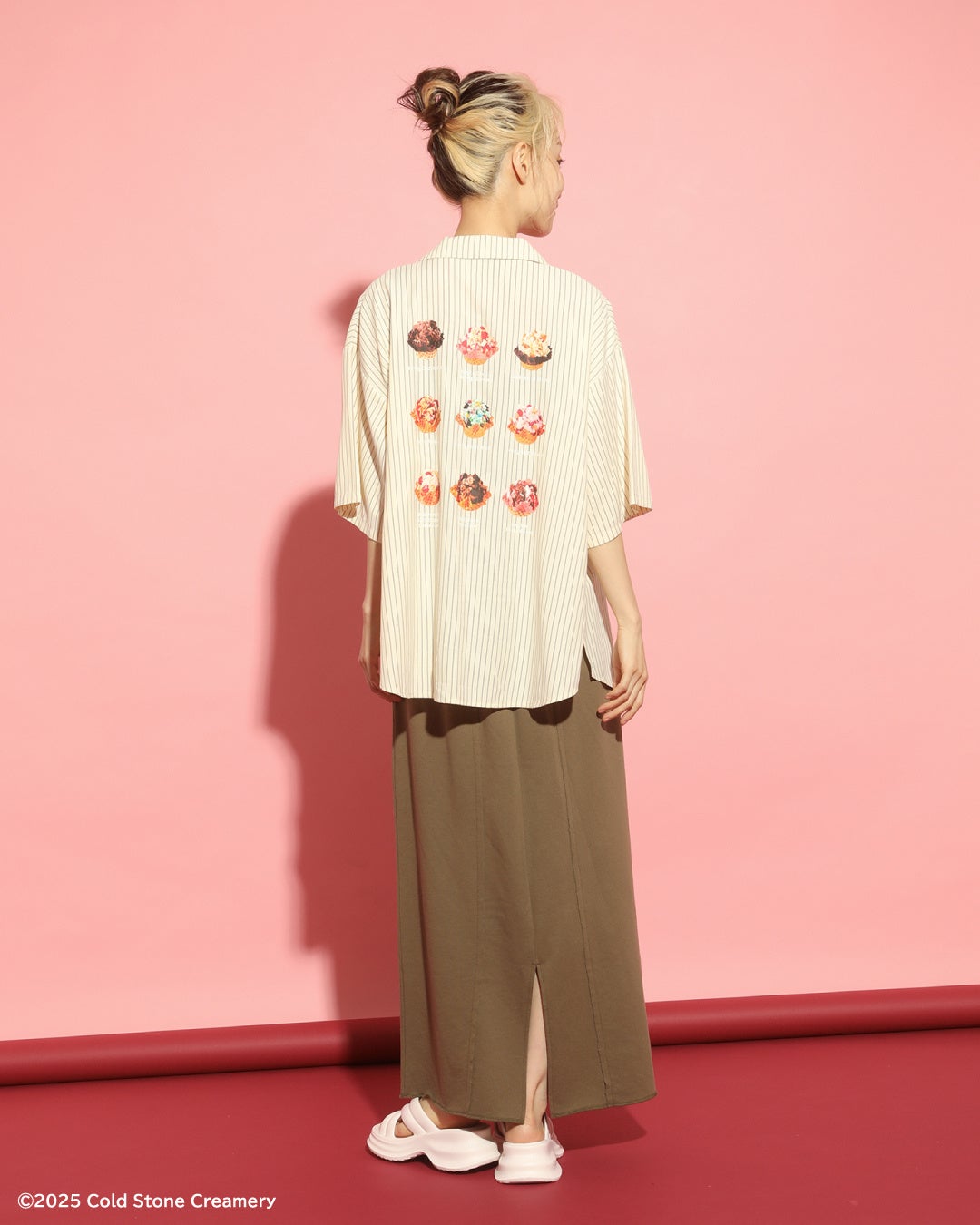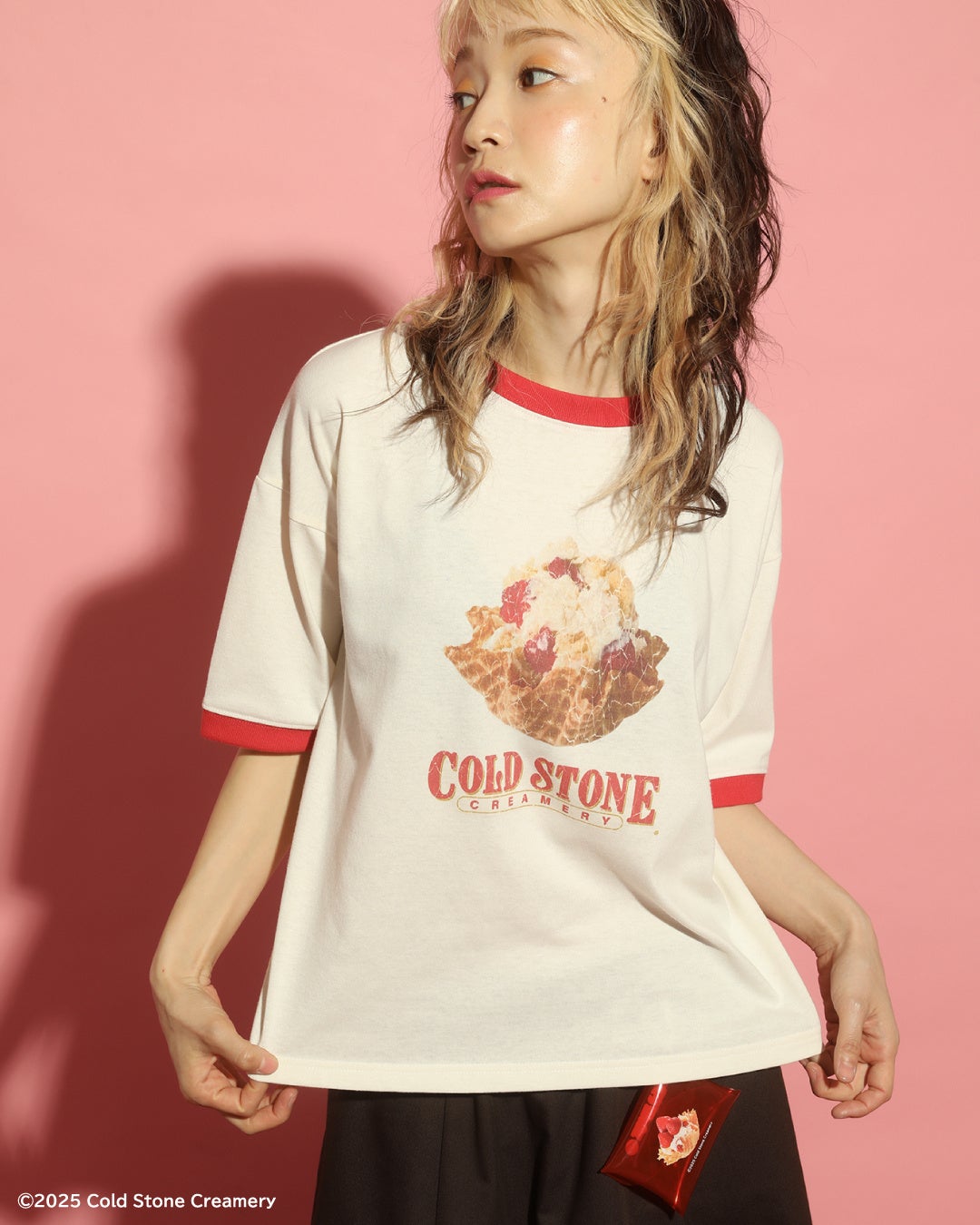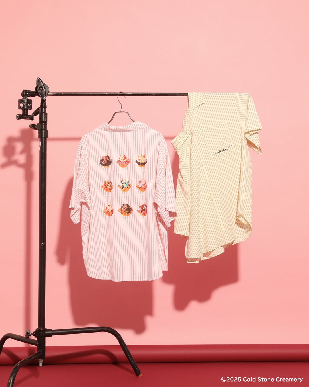 暑い日に活躍するノースリーブのトップスは、フロントに『コールド・ストーン・クリーマリー』のロゴと、バックには多彩なフレーバーのアイスクリームをプリント。一枚で着やすい半袖Tシャツは、ビッグシルエットやクロップド丈、ベーシックの3種類を揃え、それぞれ定番のアイスクリームやフローズンドリンクのアートをデザインし、今にも食べたくなるようなキャッチーなラインアップです。