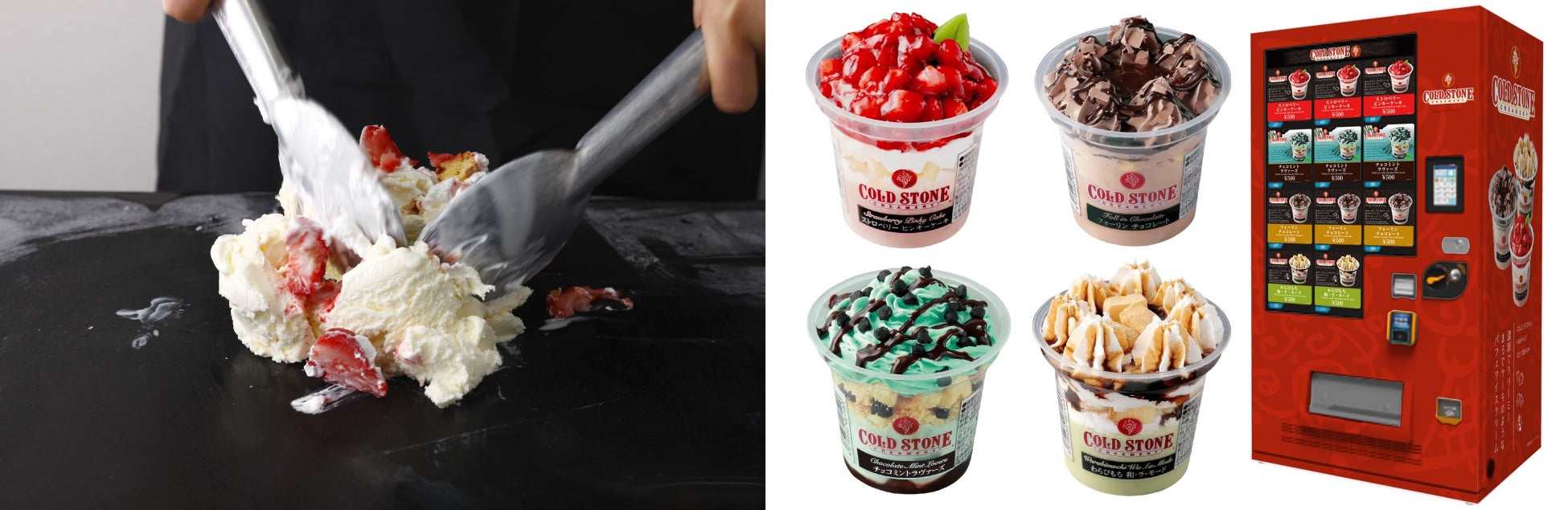 コールド・ストーン・クリーマリー(または「コールドストーン」)は、1988年にアメリカで誕生した、体験型のエンターテイメント・アイスクリームブランドです。ご注文をいただいてから、アイスクリームとナッツやフルーツなどのお好きな「ミックスイン(トッピング)」を、−9℃に冷やした石板の上で丁寧に混ぜ合わせ、お客様だけの “オリジナルアイスクリーム” をお作りします。最大の特長は、「ハッピーなひと時」をお届けするための心を込めた接客と、目の前で仕上げるライブ感あふれるパフォーマンス。ご希望に応じて、「クルー(従業員)」が歌のサービスを行うのも、コールドストーンならではの魅力のひとつです。ご気分に合わせて、ぜひお気軽にお声がけください。