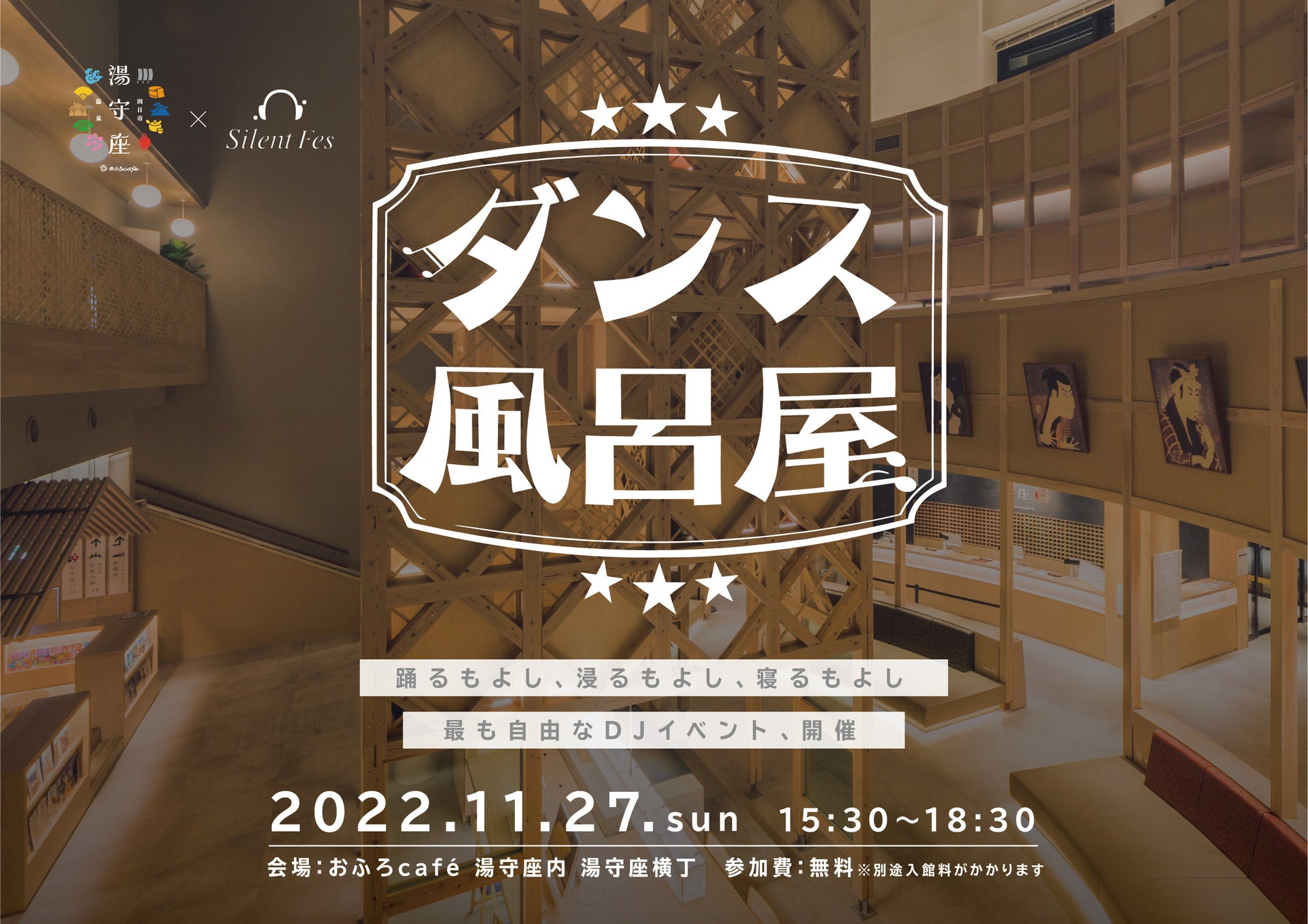 株式会社旅する温泉道場(三重県四日市市、代表取締役 宮本昌樹)が運営する、四日市温泉 おふろcafe 湯守座(三重県四日市市)は、2022年11月27日に銭湯サイレントフェス(R)「ダンス風呂屋」を開催します。