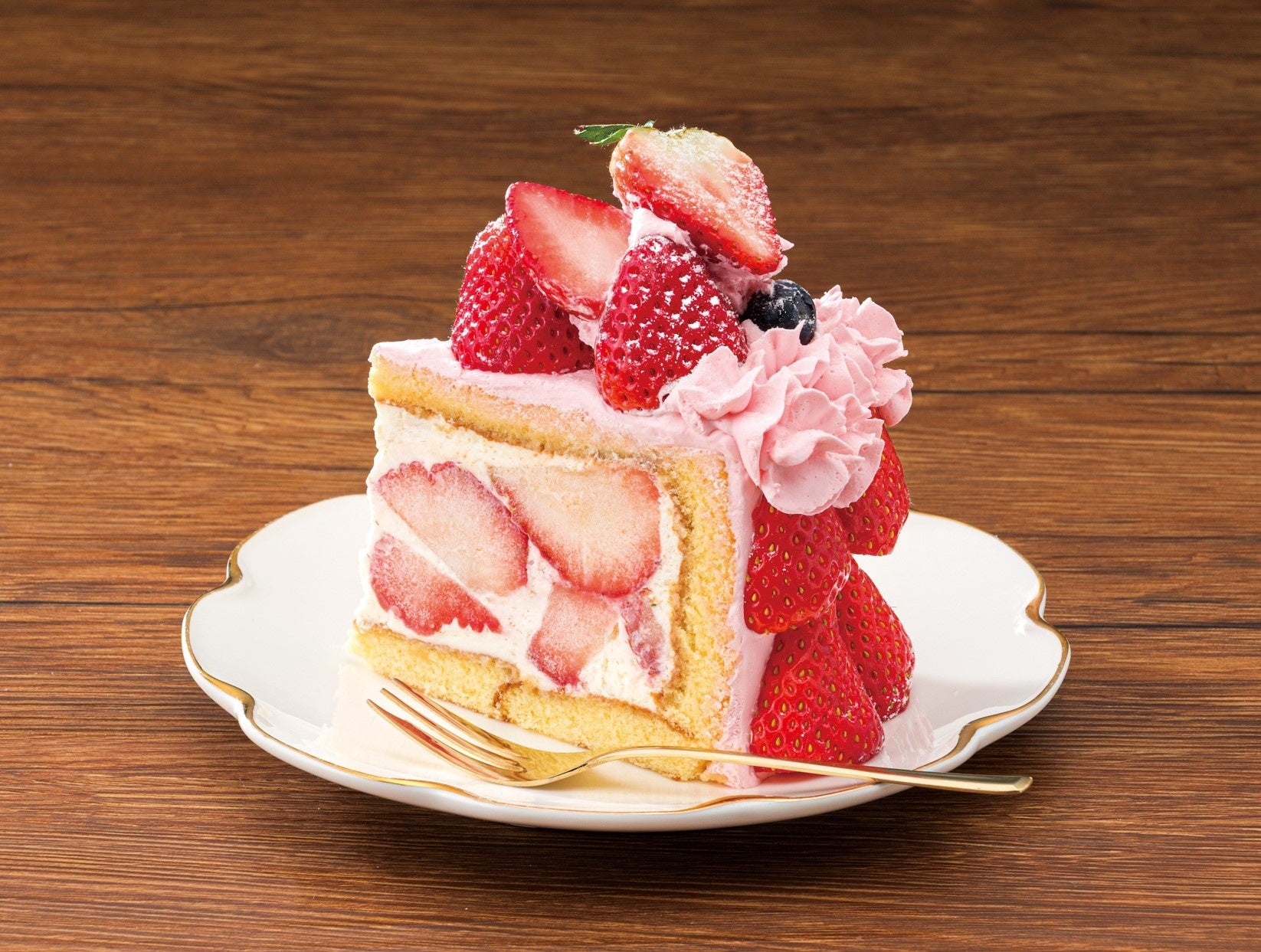 さくら風味スポンジにアングレーズムース、苺、サクラソース・ホイップクリームをサンドし、苺を飾りました。