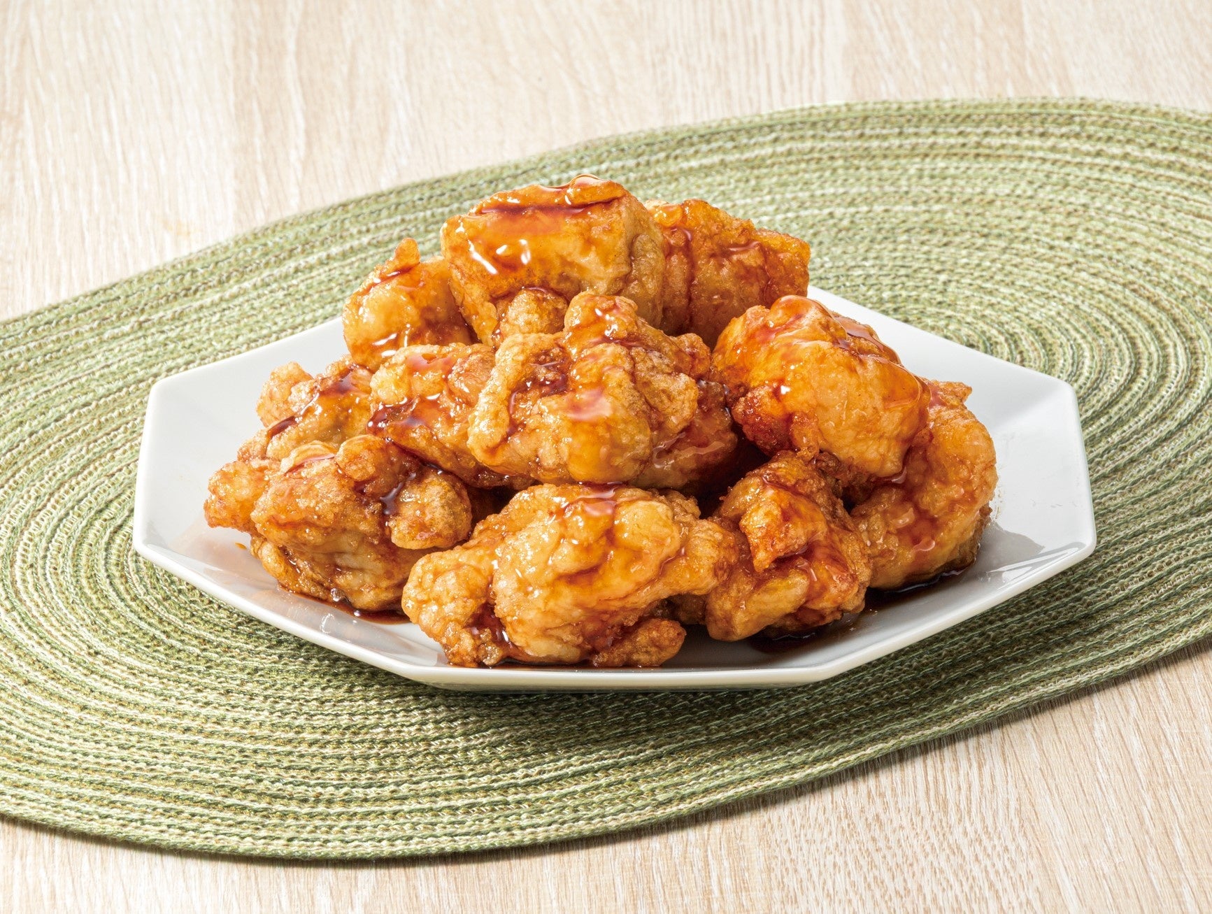 焼き鳥のタレと『浅草今半』の「すきやきわりした」を合わせた特製タレを唐揚げに絡めました。