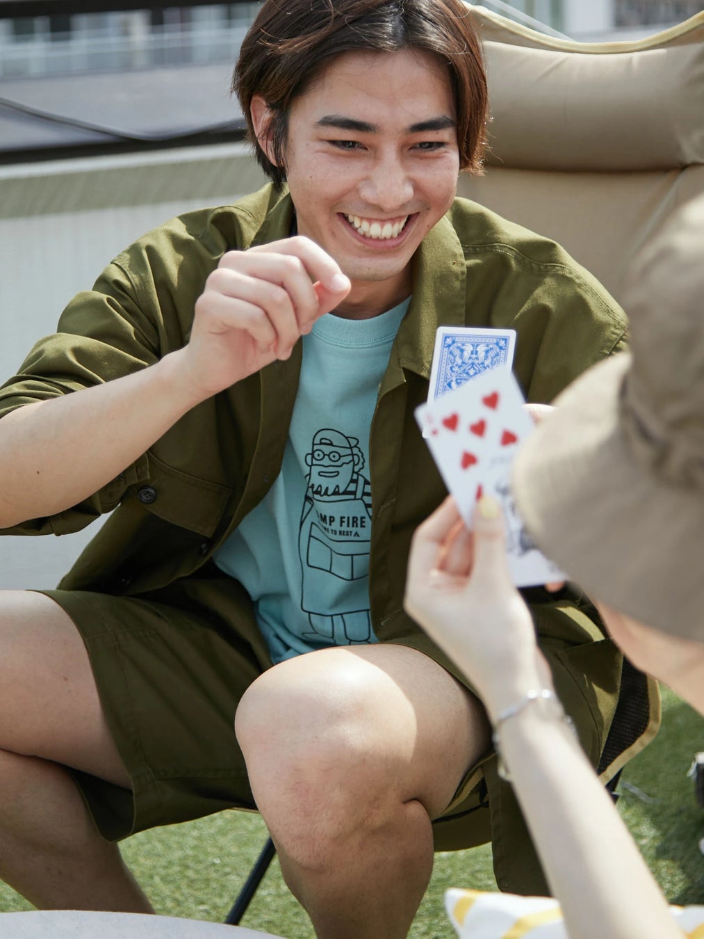 ゆるキャラのようなデザインの“おじさん”を主役にしたTシャツはプリントと刺繍シリーズの2型ご用意いたしました。それぞれに異なる趣味を満喫する“おじさん”にぜひご注目ください。シャツとパンツは多様なポケットを配置し、機能性を重視しながらも、タウンユースとしてコーディネートしやすいデザインに仕上げました。