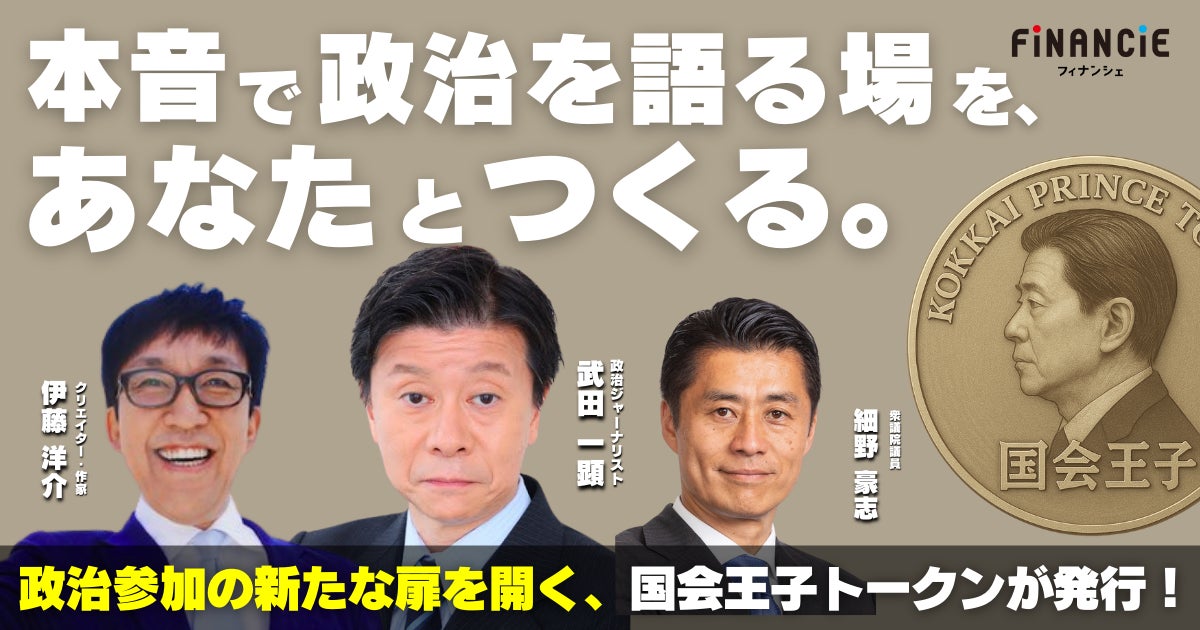 今回発行される『国会王子トークン』は、FiNANCiE史上初の政治ジャンル・コミュニティトークン。ブロックチェーン技術を活用した、政治・メディア・テクノロジーが融合する革新的な試みとなります。