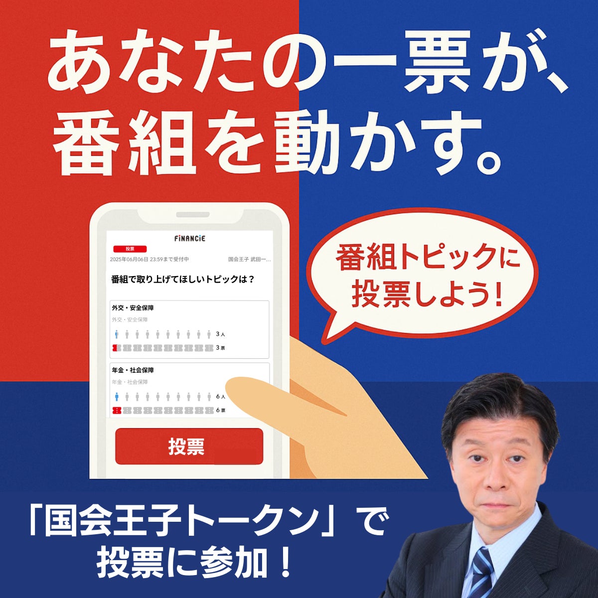 株式会社フィナンシェ(東京都渋谷区、代表取締役:國光 宏尚)は、元TBS記者で「国会王子」として知られるジャーナリスト武田一顕氏がMCを務めるYouTube番組『国会王子 武田一顕のよろしくどうぞ』が、Web3時代の新たなコミュニティ形成を目指し、トークンプラットフォーム『FiNANCiE』でコミュニティトークンを発行・販売することをお知らせいたします。