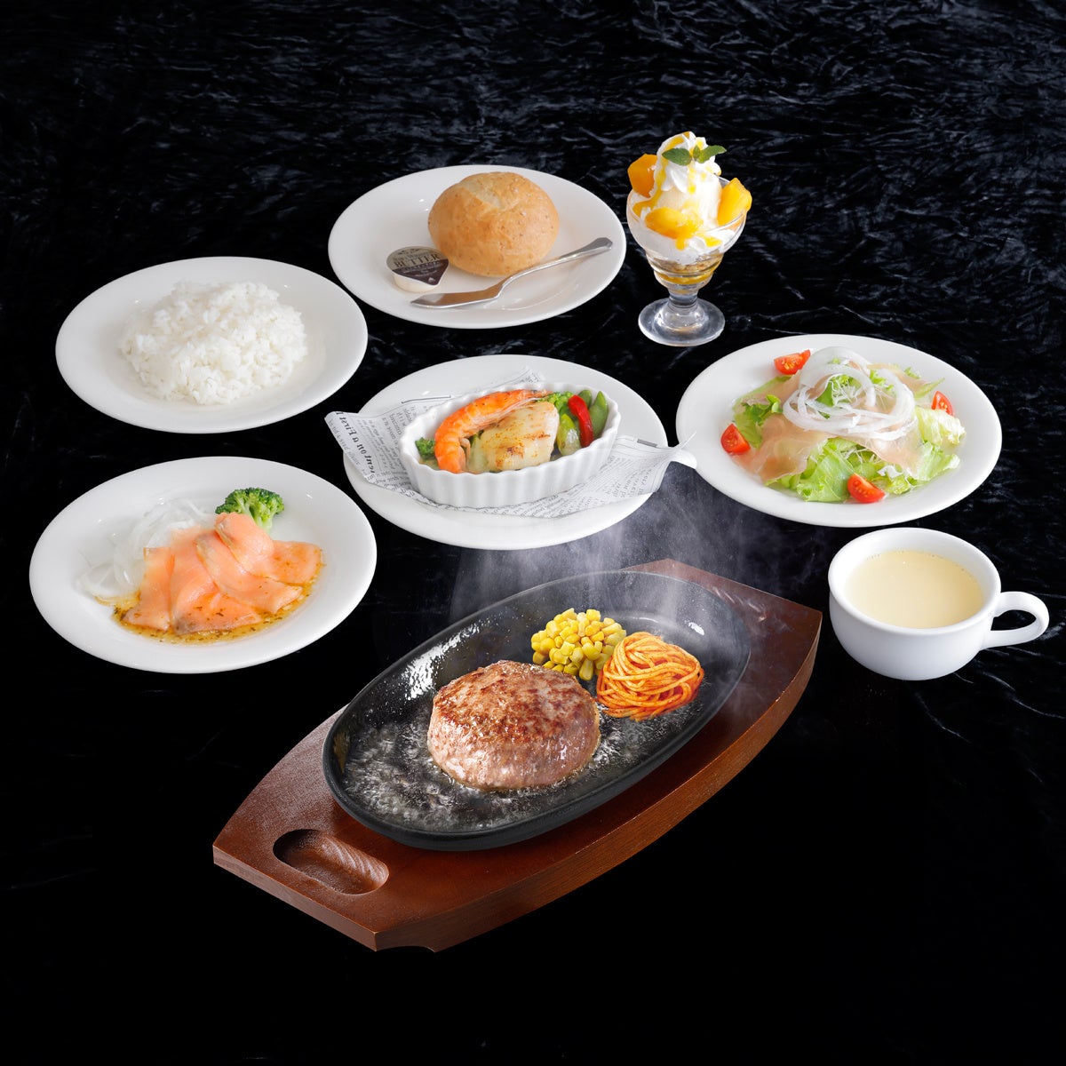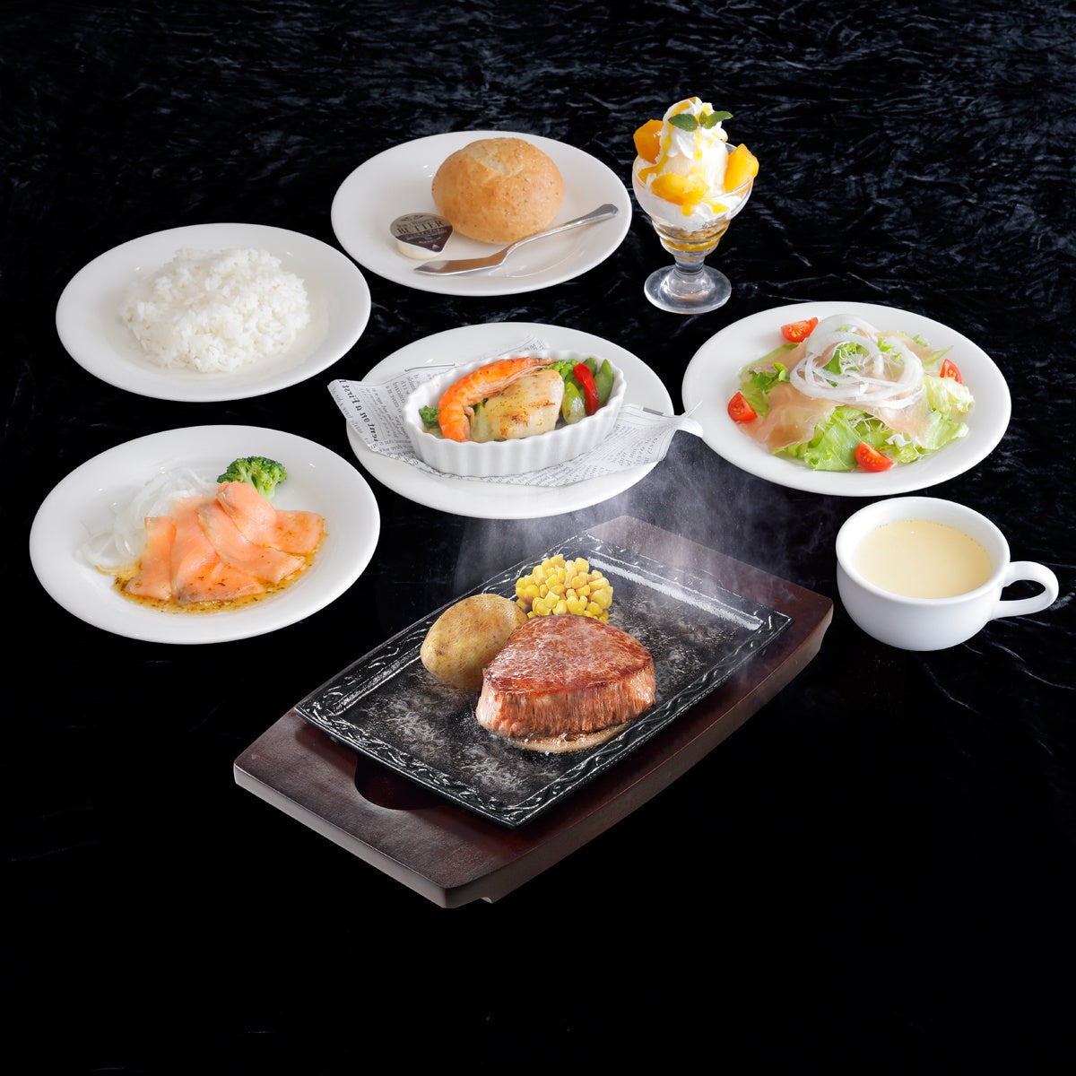 ステーキ宮こだわりのお肉を楽しめる3つの特別コースをご用意いたしました。本格厚切りステーキが堪能できる「厚切りサーロイン140gコース」お手頃な価格でワンランク上の料理を楽しめる「宮ハンバーグ225gコース」柔らかく上品な味わいの「ヒレステーキ150gコース」をご用意いたしました。各コースにはメイン含む計7品をご提供いたします。新鮮な「サラダ」や「前菜」、「魚料理」に加え、4種類のスープが飲み放題の「スープバー」、食後に嬉しい「デザート」まで、心もおなかも満たされる贅沢な内容です。