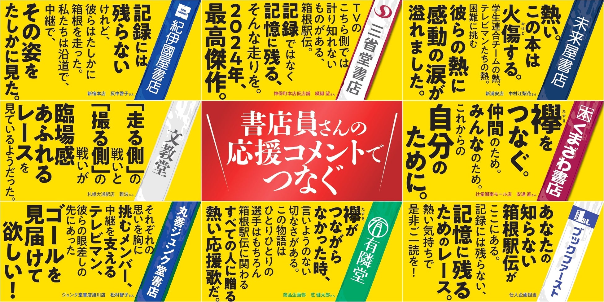 箱根駅伝で選手たちがつなぐ「襷(たすき)」をイメージし、書店ごとにカラー・コメントが異なる「特別帯」を書店の店頭で、ぜひご覧ください。