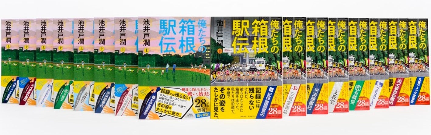 文藝春秋では、そんな箱根駅伝を題材にした池井戸潤さんの『俺たちの箱根駅伝』のプロモーション・スペシャルプロジェクト第3弾を始動。「書店員さんの応援コメントでつなぐ」キャンペーンとして、紀伊國屋書店、三省堂書店、未来屋書店、文教堂、有隣堂、ブックファースト、くまざわ書店、丸善ジュンク堂書店という書店8チェーンの全面協力の下、各書店の書店員さんたちのコメントが入った「特別帯」を製作。このたび完成いたしました。
