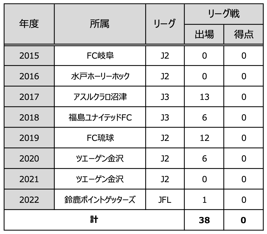 J2リーグ 18試合(0得点) / J3リーグ 19試合(0得点)