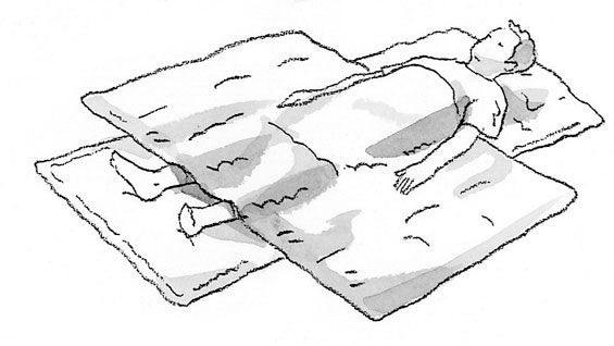 「掛け+敷き」のお布団というコンセプトの寝袋。高機能保温素材アモノフォロファイバーを封入。