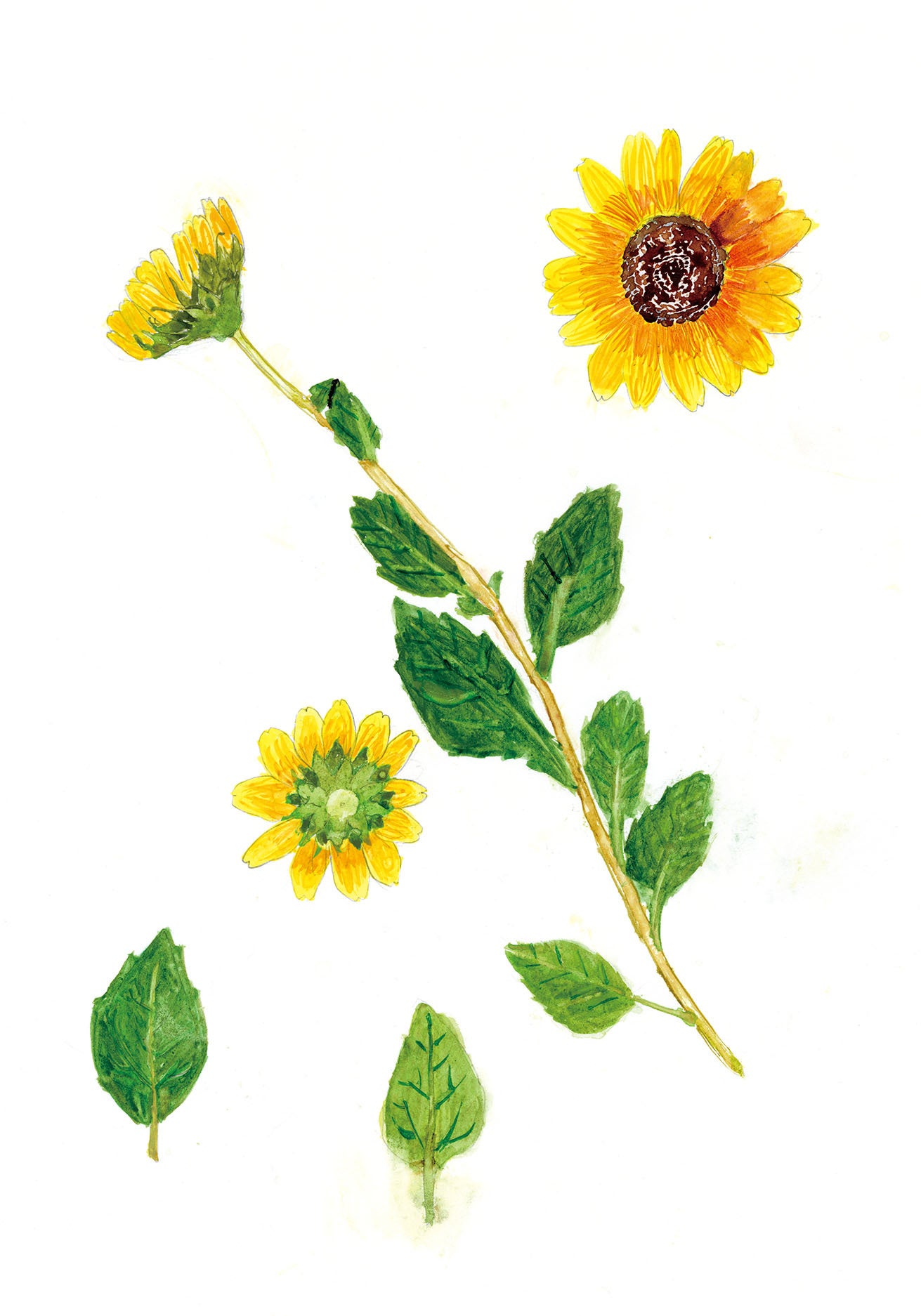 茎のラインなど、対象を素直に描いた点が好印象である。また、花の基部の特徴をしっかりとらえて描けている点や、バランスよく用紙におさまっている点も評価できる。植物との対話を楽しんで描いたことが伝わる作品である。