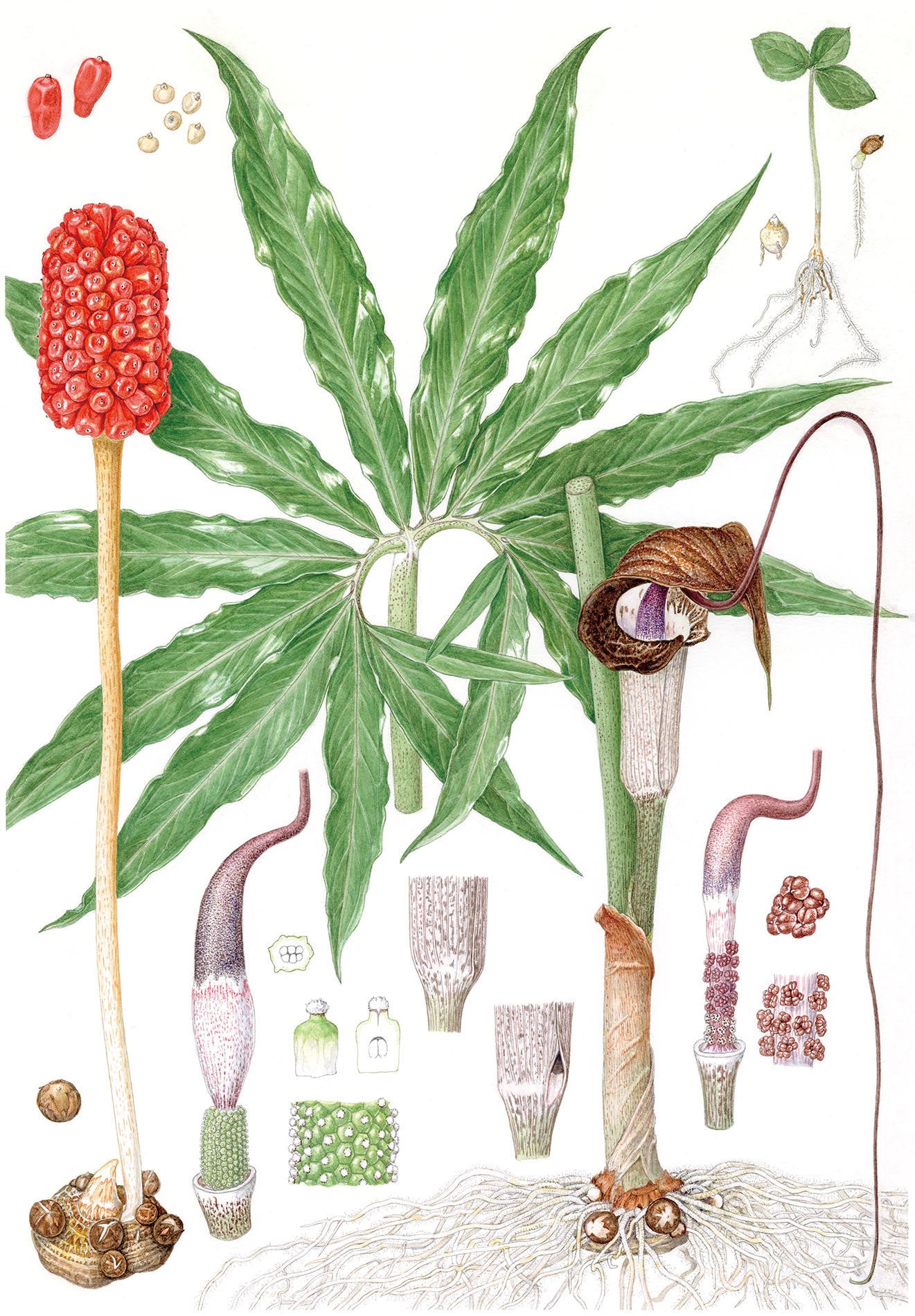 生態的な特徴に徹底的にこだわり抜いて描かれていることが伝わる作品である。あまり見掛けることの無いウラシマソウの果実の描写なども含まれており、正確な描写に関する作者の強い思い入れを感じる。