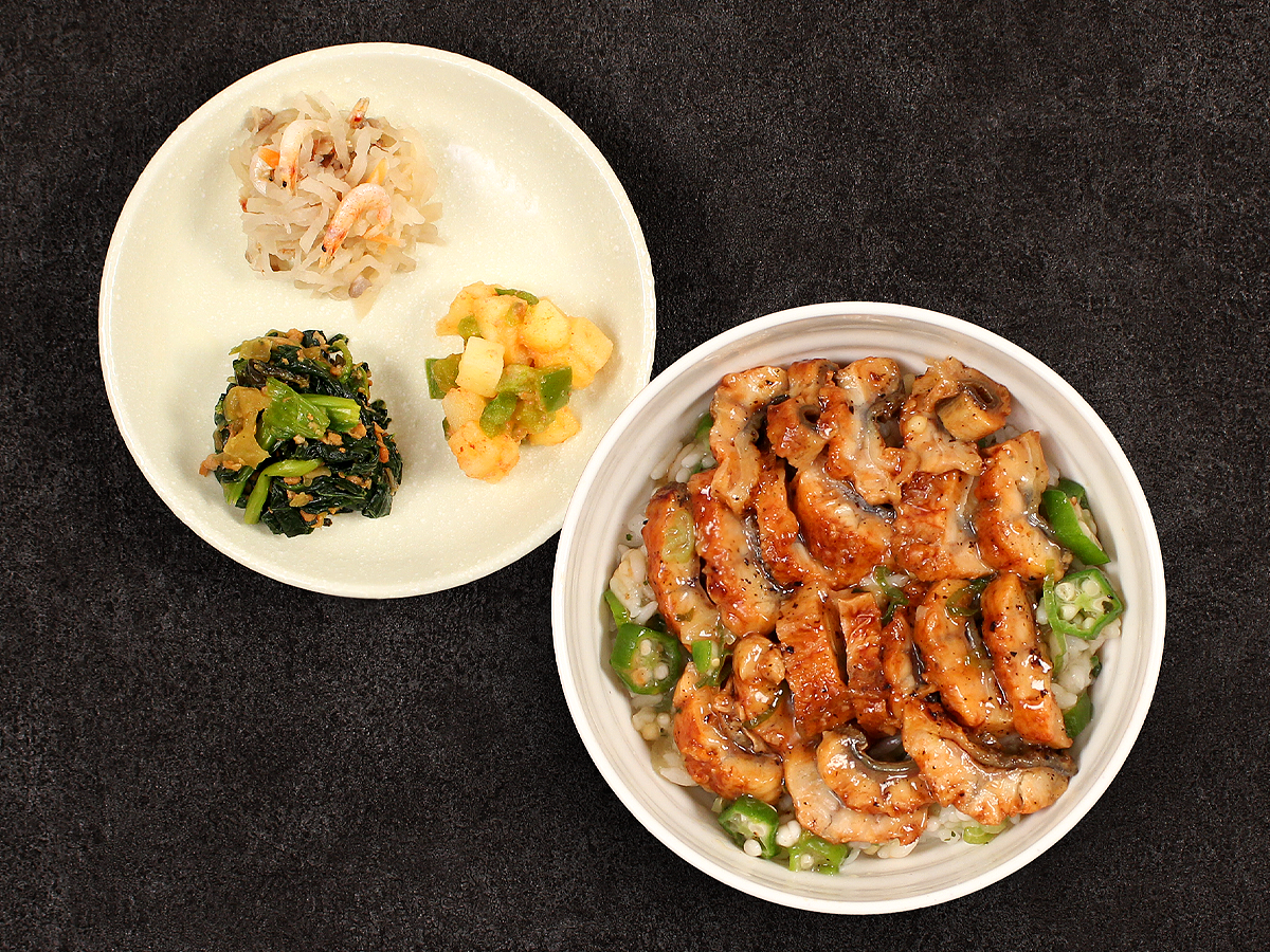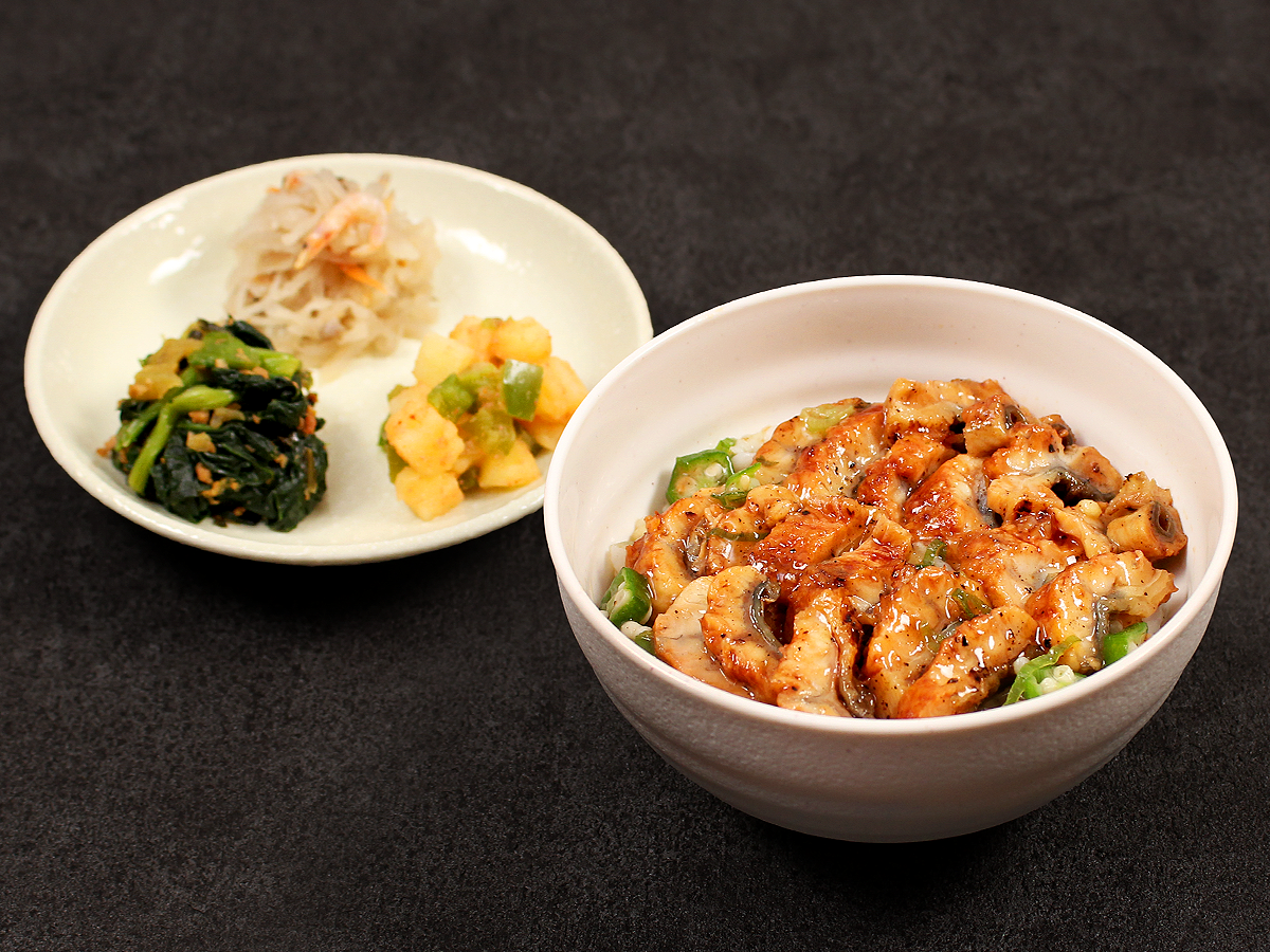 人気の「うなぎのひつまぶし」をさらに進化させた贅沢な逸品の登場。ひつまぶしの1杯目、2杯目を存分に楽しんだ後、〆の仕上げとして熱いお出汁をかけていただく「3杯目」をイメージした味わいを追求しました。香ばしいうなぎにあられとわさび風味をしっかりと効かせ、大人の味わいに。熱いお茶を少し足すと、さらに本格的な味わいを楽しんでいただけます。オクラを混ぜ込むことでご飯に自然なとろみを加え、糖質を抑えつつも、しっかりとした食べ応えを実現しました。残暑にはさっぱりと、初秋にはほっこりと、季節に合わせて召し上がっていただけます。