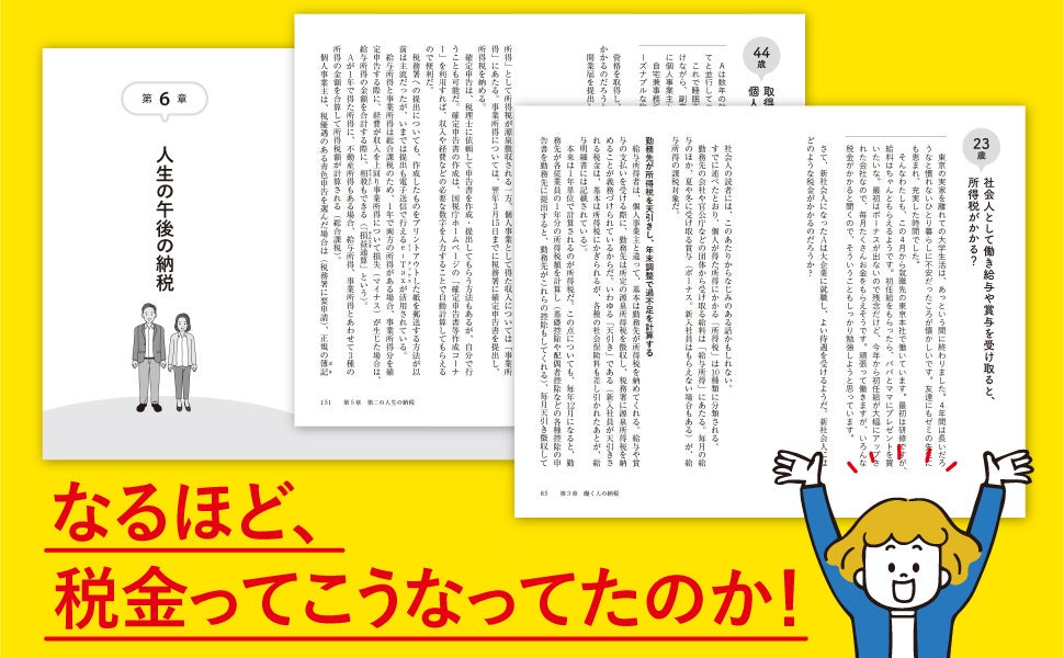 そこで、法律をわかりやすく伝える一般書が人気の著者(弁護士、法学部教授)が、ひとりの登場人物の誕生から成長、就職、結婚、育児、介護…そして死後までを追いながら、各ライフステージで払う多種多様な税金を解説します。